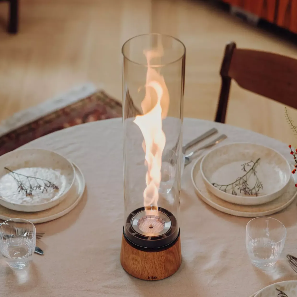 Das moderne Tischfeuer beeindruckt durch seinen eleganten Glaszylinder aus hochwertigem Borosilikatglas, das nicht nur ein optischer Genuss ist, sondern auch Hitze hervorragend standhält. Die Kombination aus Glas und Stahl verleiht dem Design eine zeitlose Ästhetik. Mit einem Durchmesser von 13 cm passt es perfekt auf jede Tischfläche und wird zum stilvollen Mittelpunkt jeder Veranstaltung, ob drinnen oder draußen.Der SPIN air bietet eine Brenndauer von 100 bis 150 Minuten, betrieben mit ca. 500 ml höfats Bioethanol Flüssig-Brennstoff. Diese umweltfreundliche Wahl ermöglicht ein geruchsneutrales, ruß- und rauchfreies Erlebnis. Der Lieferumfang umfasst alles, was Sie für den sofortigen Einsatz benötigen: Base, Flügelkörper mit Sicherheitsbehälter, Bio-Burner mit Eco-Ring und Löschdeckel.Zertifiziert sowohl für den Innen- als auch den Außenbereich, fügt sich das Tischfeuer harmonisch in verschiedenste Umgebungen ein und bietet gleichzeitig höchste Sicherheitsstandards. Die edle Eichenfarbe ergänzt die moderne Gestaltung und verleiht jedem Raum oder Garten eine warme, einladende Atmosphäre. Lassen Sie sich von der besonderen Lichtquelle verzaubern und schaffen Sie ein einzigartiges Ambiente für entspannte Stunden.