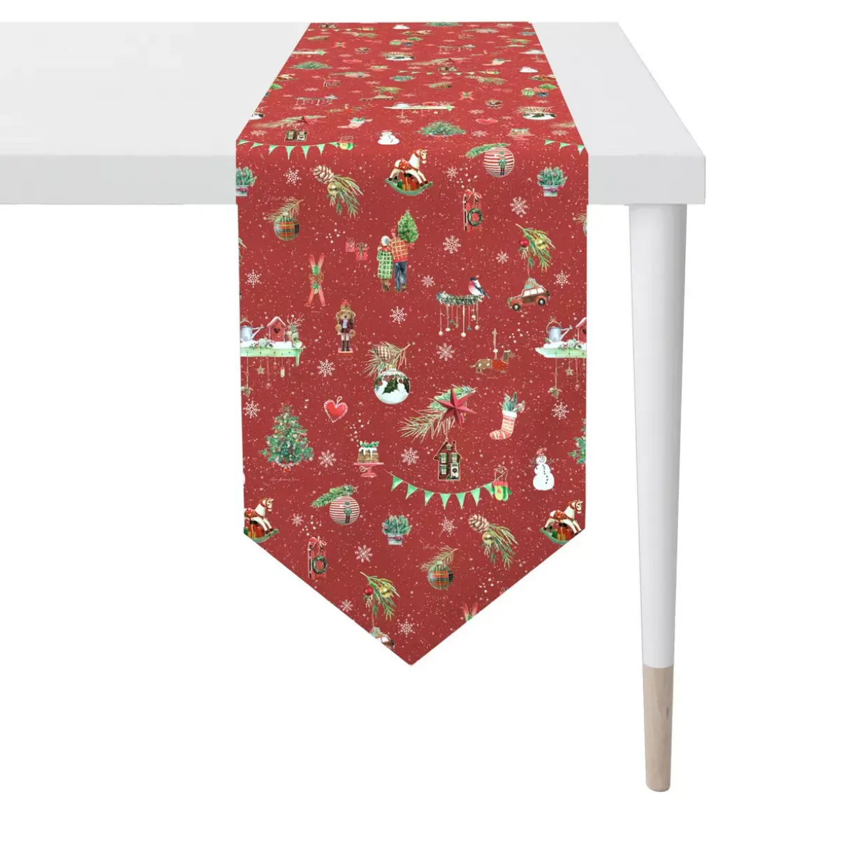 Ein klassischer Tischläufer in einem leuchtenden Rot verleiht Ihrem Tisch eine festliche Note. Das Modell 6200 aus hochwertigem Mischgewebe besticht durch sein ansprechendes Weihnachtsmotiv, welches Ihre Festtafel stilvoll ergänzt. Die rechteckige Form und das konventionelle Design machen diesen Tischläufer zu einem vielseitigen Accessoire für viele Gelegenheiten.
