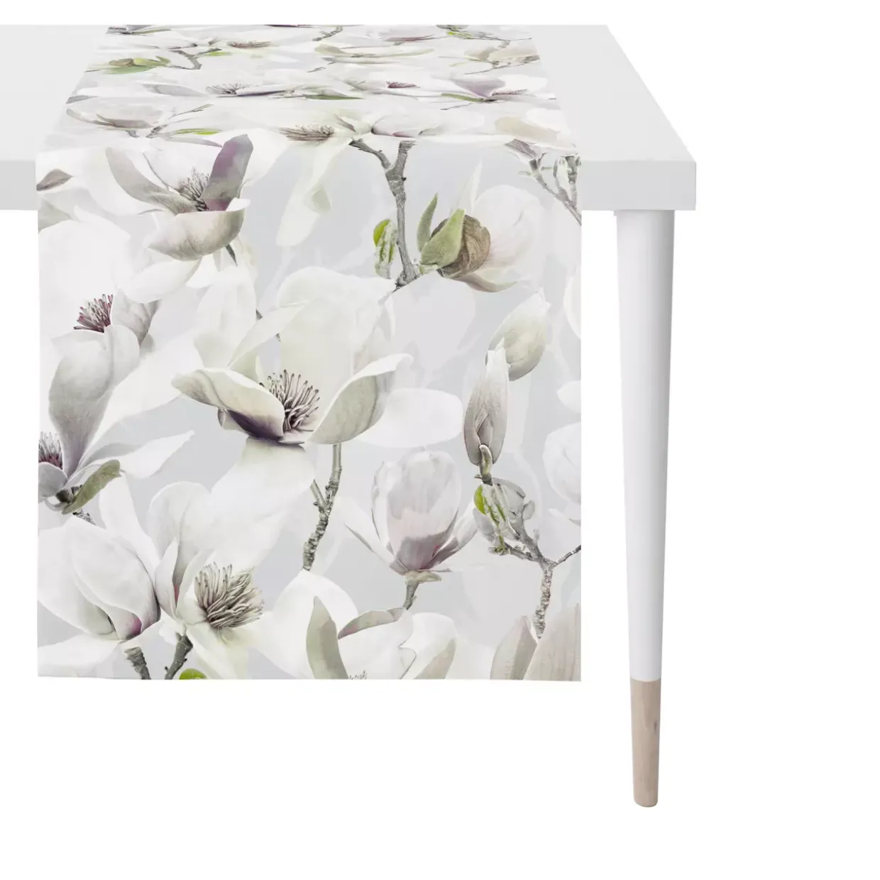 Ein Hauch von Frühling zieht mit dem zauberhaften Muster aus Magnolienzweigen in Ihr Zuhause ein. Die bedruckte Oberfläche zeugt von einer hochwertigen Verarbeitung, die durch das Öko Tex Zertifikat für umweltfreundliche Herstellung bestätigt wird.