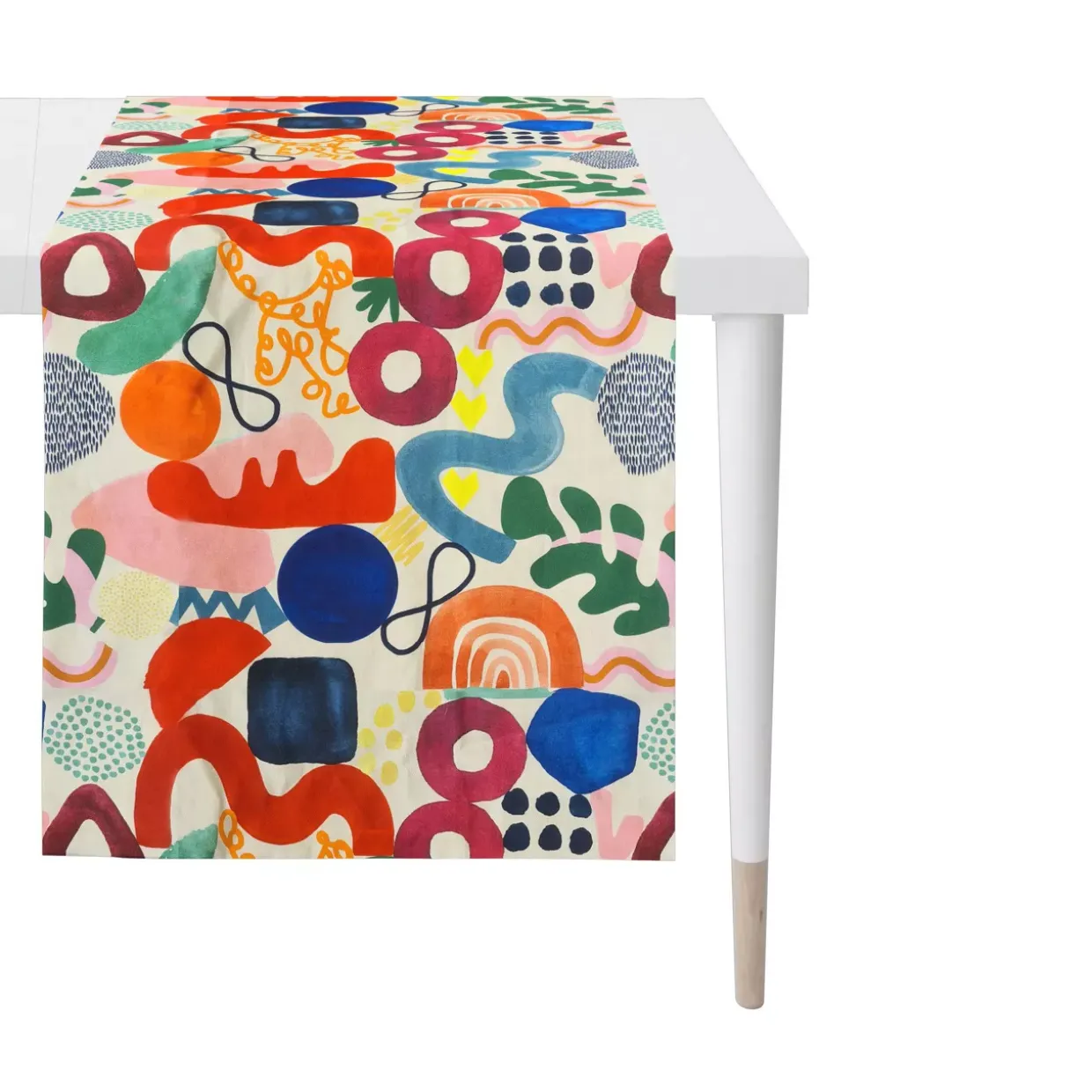 In einem Hauch von Retro-Charme präsentiert sich dieser Tischläufer, der mit seiner rechteckigen Form und dem graphischen Muster ein stilvolles Highlight auf jedem Tisch ist. Multicolour-Designs verleihen ihm eine lebendige Note, die sich wunderbar in jede Jahreszeit einfügt und für frische Akzente sorgt.