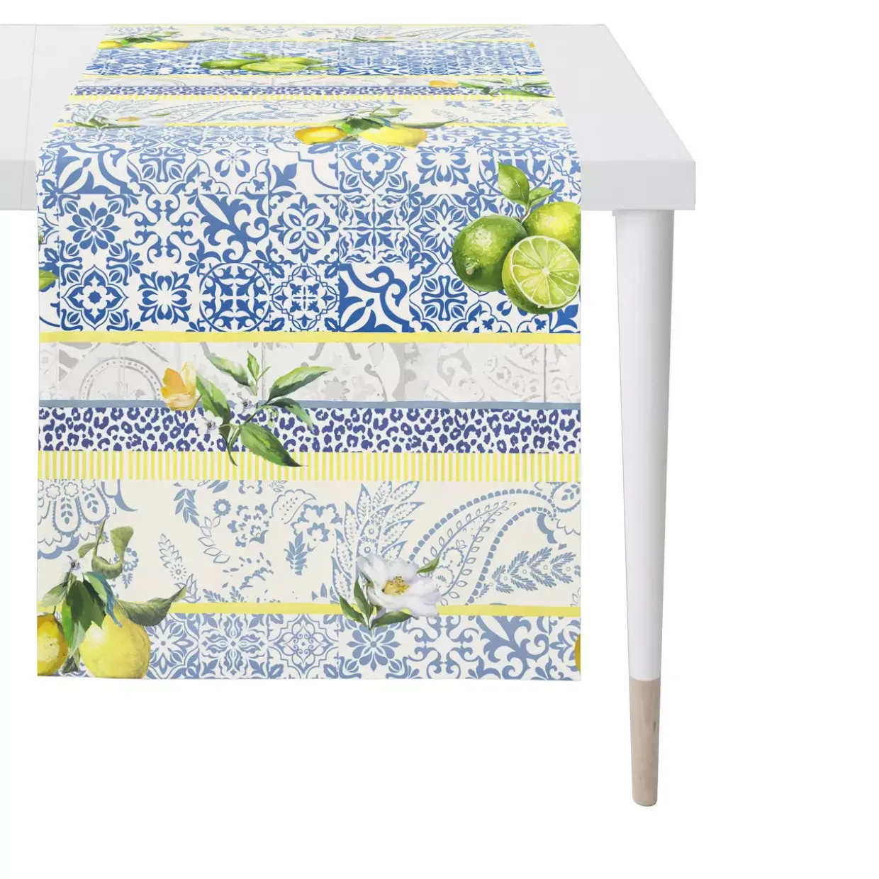 Ein Tischläufer, der mit seinem modernen Stil und rechteckigen Design beeindruckt, bringt einen Hauch von Eleganz auf jeden Tisch. Die harmonische Farbkomposition aus Blau, Gelb und Naturtönen fängt die Essenz des Sommers perfekt ein. Aus hochwertigem Textil gefertigt, bietet dieser Tischläufer nicht nur eine ansprechende Optik, sondern auch eine angenehme Haptik.Die bedruckte Oberfläche verleiht Ihrem Tisch eine lebendige Note, indem sie Früchte und Gemüse kunstvoll darstellt. Ein nachhaltiger Lebensstil wird durch das Ökotex-Standard 100 Zertifikat unterstützt, das die Unbedenklichkeit der verwendeten Materialien garantiert. Praktisch in der Pflege, lässt sich der Tischläufer bei bis zu 30°C schonend in der Maschine waschen. Für einen gepflegten Look kann er mäßig heiß gebügelt werden. Es wird empfohlen, auf das Trocknen im Trockner zu verzichten und stattdessen sanfte Reinigungsmethoden zu nutzen, wie z.B. eine Reinigung mit Perchlorethylen.Ein Tischläufer, der nicht nur durch sein ansprechendes Design überzeugt, sondern auch durch seine funktionalen und pflegeleichten Eigenschaften. Lassen Sie sich von der sommerlichen Atmosphäre inspirieren und verschönern Sie Ihren Tisch mit diesem stilvollen Accessoire.