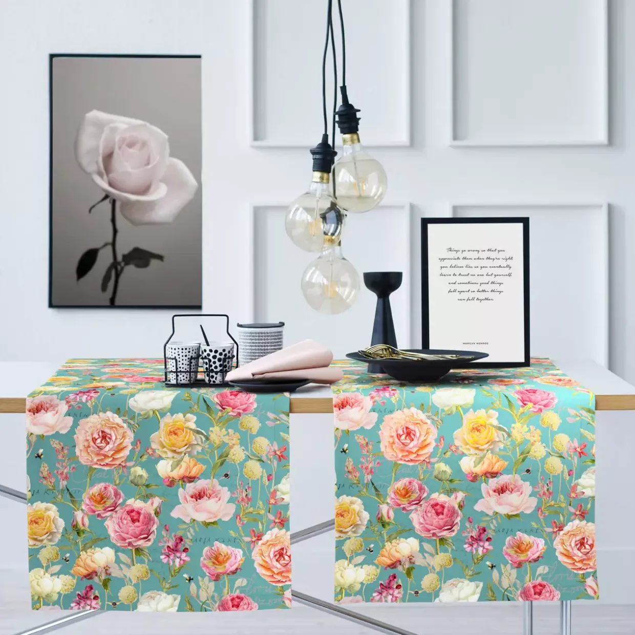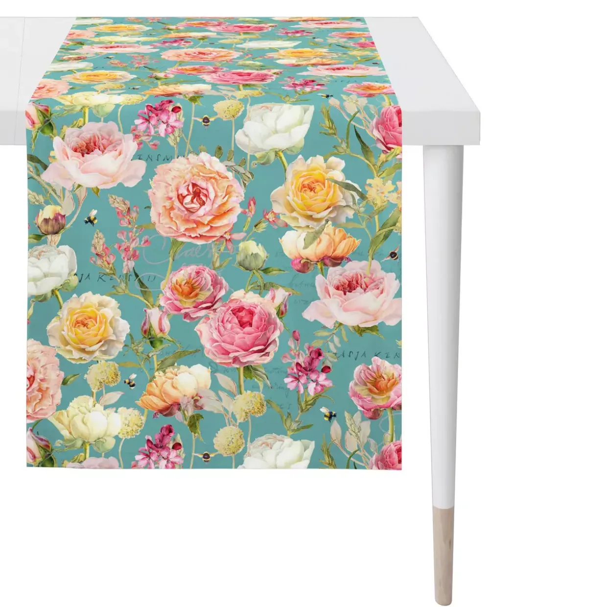 Ein Hauch von Sommer auf Ihrem Tisch: Der moderne Tischläufer in petrol und bunt erstrahlt in lebendigen Farben und bringt frische Akzente in Ihr Zuhause. Der rechteckige Tischläufer überzeugt durch ein elegantes, florales Muster, das auf hochwertigem Mischgewebe aufgedruckt ist. Mit seiner bedruckten Oberfläche fügt er sich nahtlos in eine moderne Einrichtung ein und verleiht Ihrem Essbereich eine stilvolle Note.