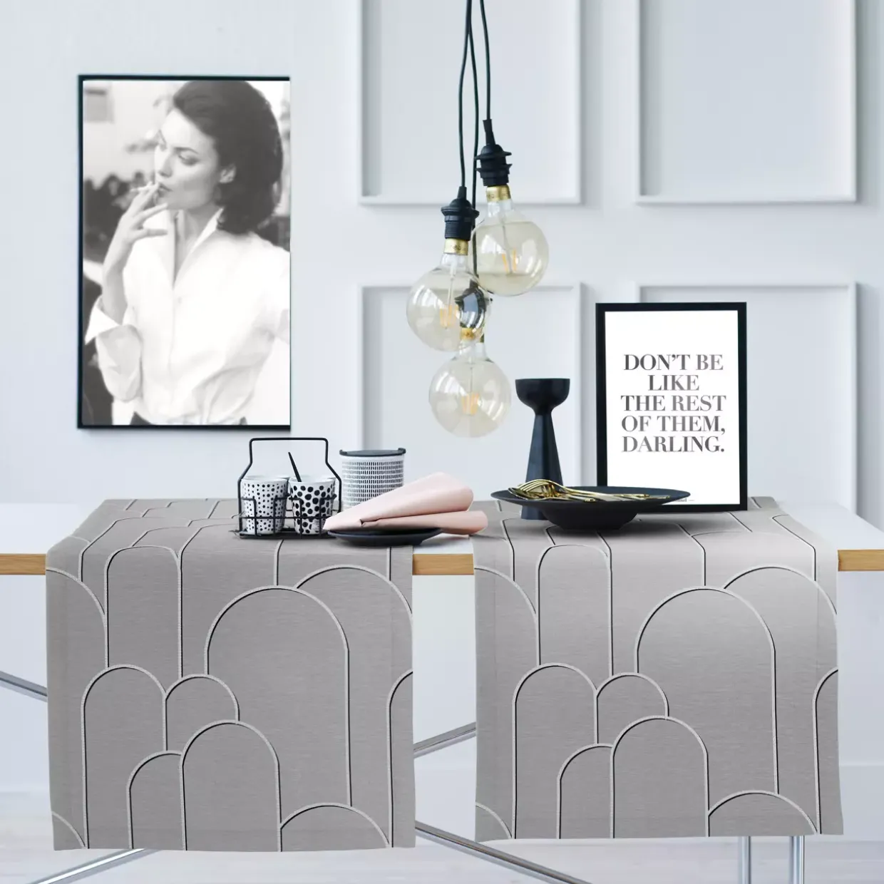 Der Tischläufer Vision besticht durch seine moderne, rechteckige Form und verleiht jedem Tisch ein stilvolles Ambiente. In einem zeitlosen Grauton gehalten, fügt sich das graphische Muster nahtlos in verschiedene Einrichtungsstile ein und setzt dennoch einen eleganten Akzent. Die hochwertige Synthetikfaser sorgt dafür, dass der Tischläufer nicht nur optisch überzeugt, sondern auch in Sachen Langlebigkeit punktet.