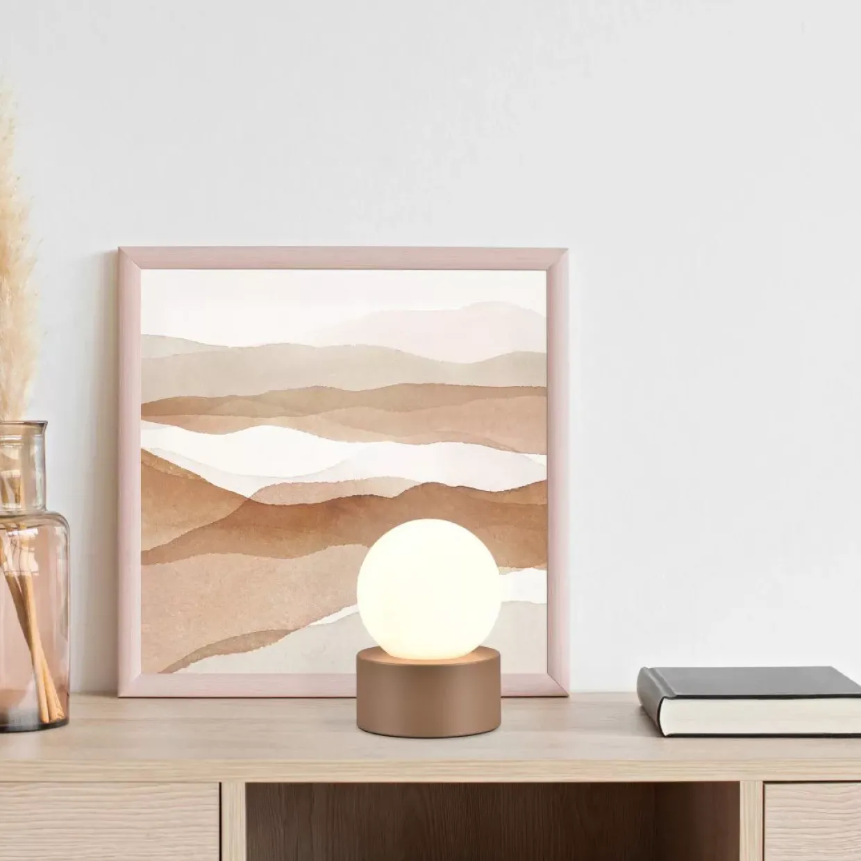 Die Tischleuchte COUNTESS überzeugt mit ihrer schlichten und klassisch inspirierten Form. Durch das kleine Glas in Kugelform wird ein angenehmes Licht abgegeben, welches für eine gemütliche Lichtstimmung sorgt. Mit einer praktischen On/Off Touch Funktion ausgestattet findet diese Tischleuchte überall einen Platz. Der weiße Glasschirm schafft einen großartigen Kontrast zu dem Metallfuß in Coffee. Für eine energiesparende Beleuchtung empfiehlt sich die Verwendung eines LED Leuchtmittels. Diese sind eine optimale Alternative zu herkömmlichen Halogen Leuchtmitteln und stehen für eine hohe Lichtqualität und eine Energieeinsparung von bis zu 80%. Zusätzlich profitieren Sie bei LED Leuchtmitteln von einer langen Lebensdauer, einer geringen Wärmeentwicklung und schonen gleichzeitig die Umwelt.
