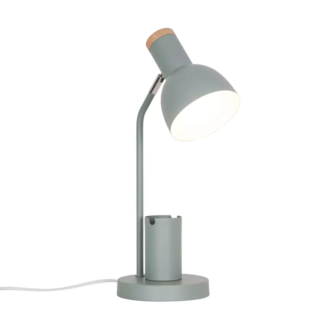 Ein Hauch von Modernität zieht mit der staubgrünen Devone Tischlampe in Ihr Zuhause ein. Diese elegante Beleuchtungslösung kombiniert gekonnt die Materialien Metall und Kunststoff, um eine langlebige und gleichzeitig stilvolle Ästhetik zu gewährleisten. Egal ob im Wohnzimmer, auf dem Nachttisch oder im Arbeitszimmer, die Devone Tischleuchte fügt sich harmonisch in verschiedenste Raumkonzepte ein.Die E27-Fassung bietet Ihnen die Möglichkeit, ein Leuchtmittel Ihrer Wahl zu integrieren, sodass Sie die Lichtintensität und -farbe individuell an Ihre Bedürfnisse anpassen können. Beachten Sie, dass kein Leuchtmittel im Lieferumfang enthalten ist, sodass Sie die Freiheit haben, zwischen verschiedenen Optionen zu wählen.Ein besonderes Highlight ist die unkomplizierte Betriebsart über das Stromnetz, die für eine zuverlässige und konstante Beleuchtung sorgt. Diese Tischlampe ist nicht nur ein funktionales Element, sondern auch ein stilvolles Accessoire, das durch seine subtile Farbgebung und moderne Formensprache überzeugt. Wenn Sie einen Hauch von Eleganz und Funktionalität in Ihren Wohnraum bringen möchten, ist die Devone Tischleuchte die perfekte Wahl. Genießen Sie die gelungene Kombination aus Design und Funktion, die Ihrem Ambiente eine besondere Note verleiht.