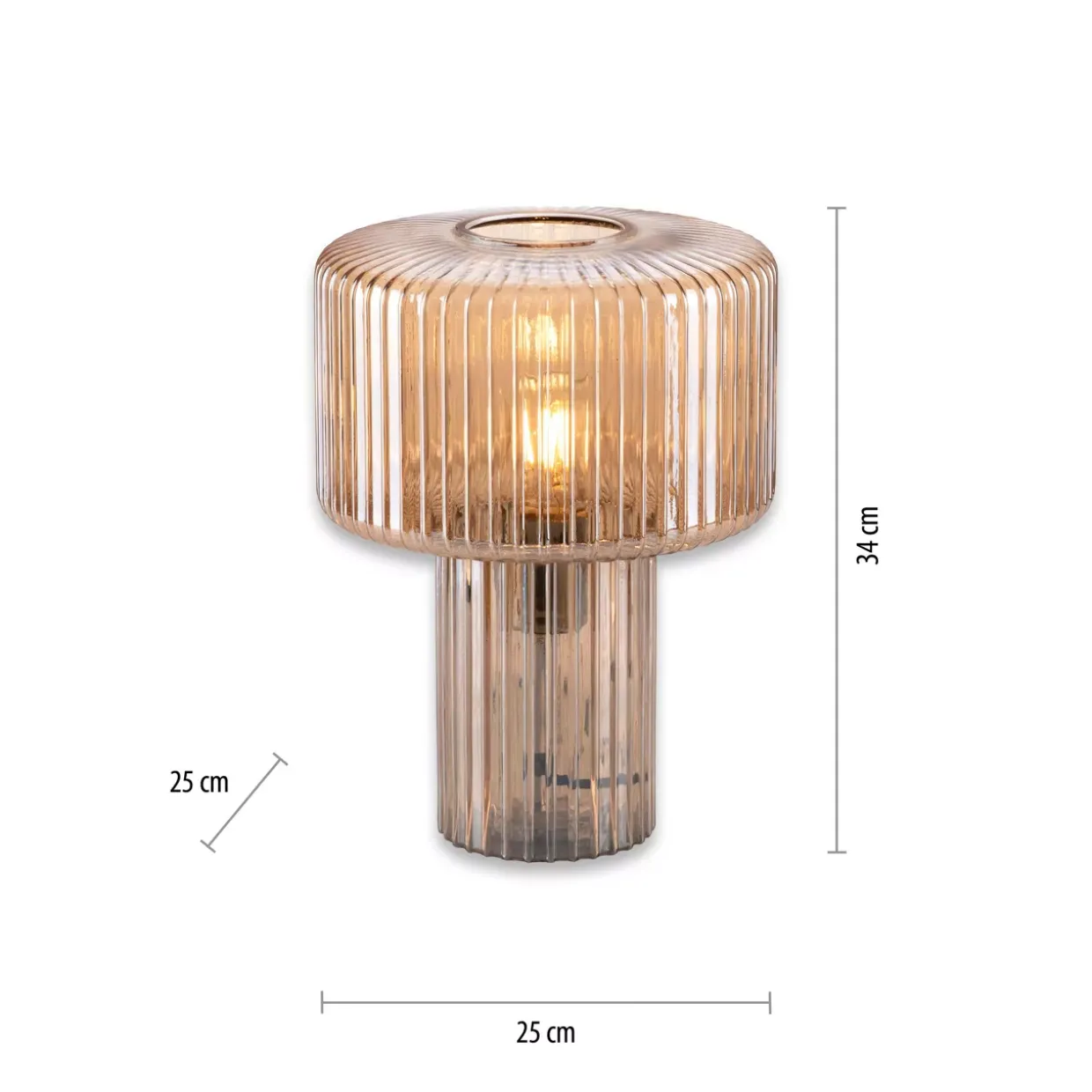 Amberfarbene Eleganz für Ihr Zuhause: Die Tischleuchte Modell Fungus besticht durch ihre moderne Ästhetik und fügt sich nahtlos in zeitgemäße Einrichtungsstile ein. Ihr geschmackvolles Design wird durch die Verwendung von hochwertigem Glas unterstrichen, welches der Leuchte eine erhabene Leichtigkeit verleiht.