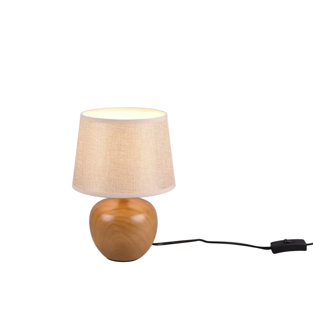 Holznachbildung trifft auf modernes Design in der Tischleuchte Luxor. Diese stilvolle Leuchte fügt sich nahtlos in jedes zeitgemäße Interieur ein und bietet ganzjährig ein angenehmes Ambiente. Der runde Schirm aus Textil in sanftem Beige sorgt für eine weiche Lichtstreuung und harmoniert perfekt mit der robusten Keramikbasis. Ein Schnurschalter ermöglicht eine einfache Bedienung, während die E14-Fassung individuell mit einem Leuchtmittel Ihrer Wahl bestückt werden kann, um bis zu 40 Watt Helligkeit zu erzeugen.