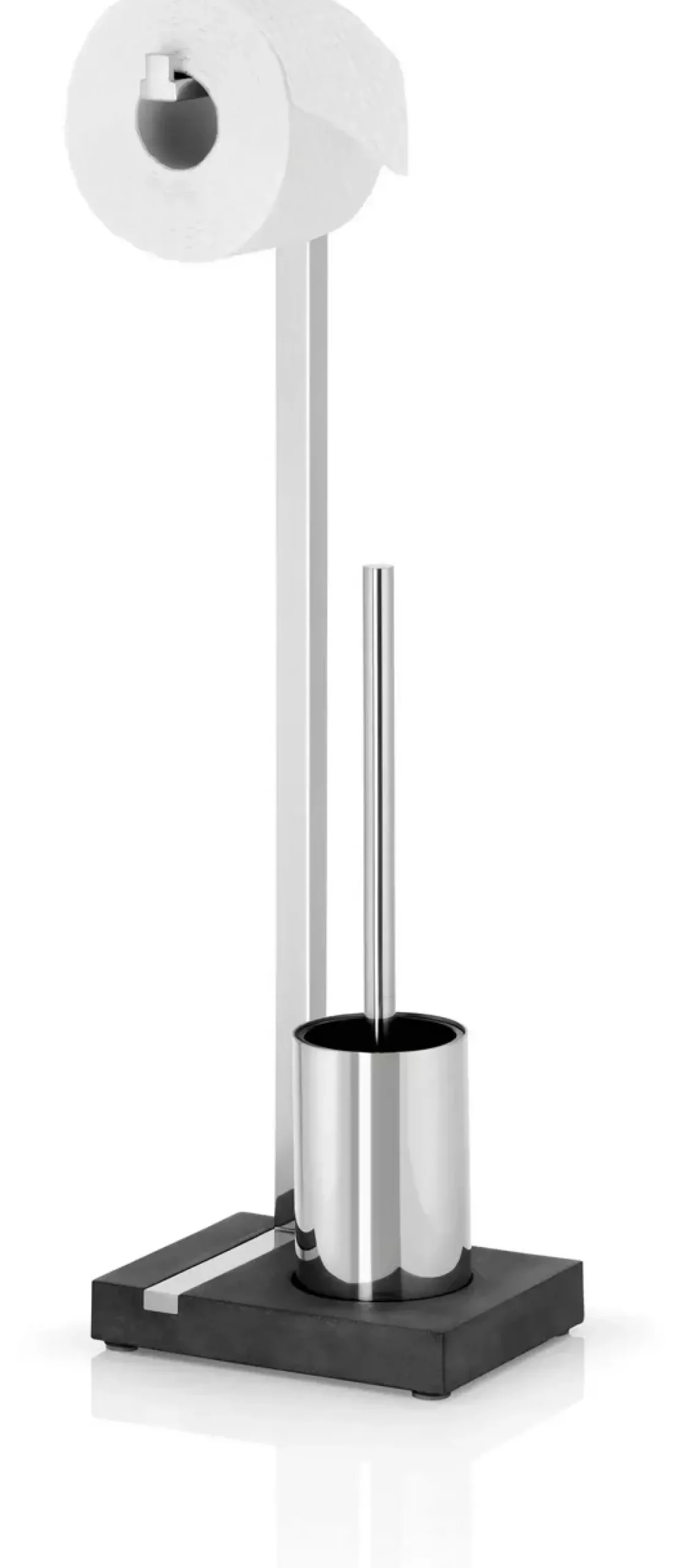 Im Badezimmer wird der Toilettenbutler zu einem funktionalen Begleiter, der gleichzeitig Stil und Ordnung bringt. Die silberne Farbgebung harmoniert mit verschiedensten Einrichtungsstilen und fügt sich nahtlos in das moderne Ambiente ein. Die Materialkombination aus Kunststoff, Metall und Stein bietet eine interessante Haptik und verleiht dem Produkt einen einzigartigen Charakter.