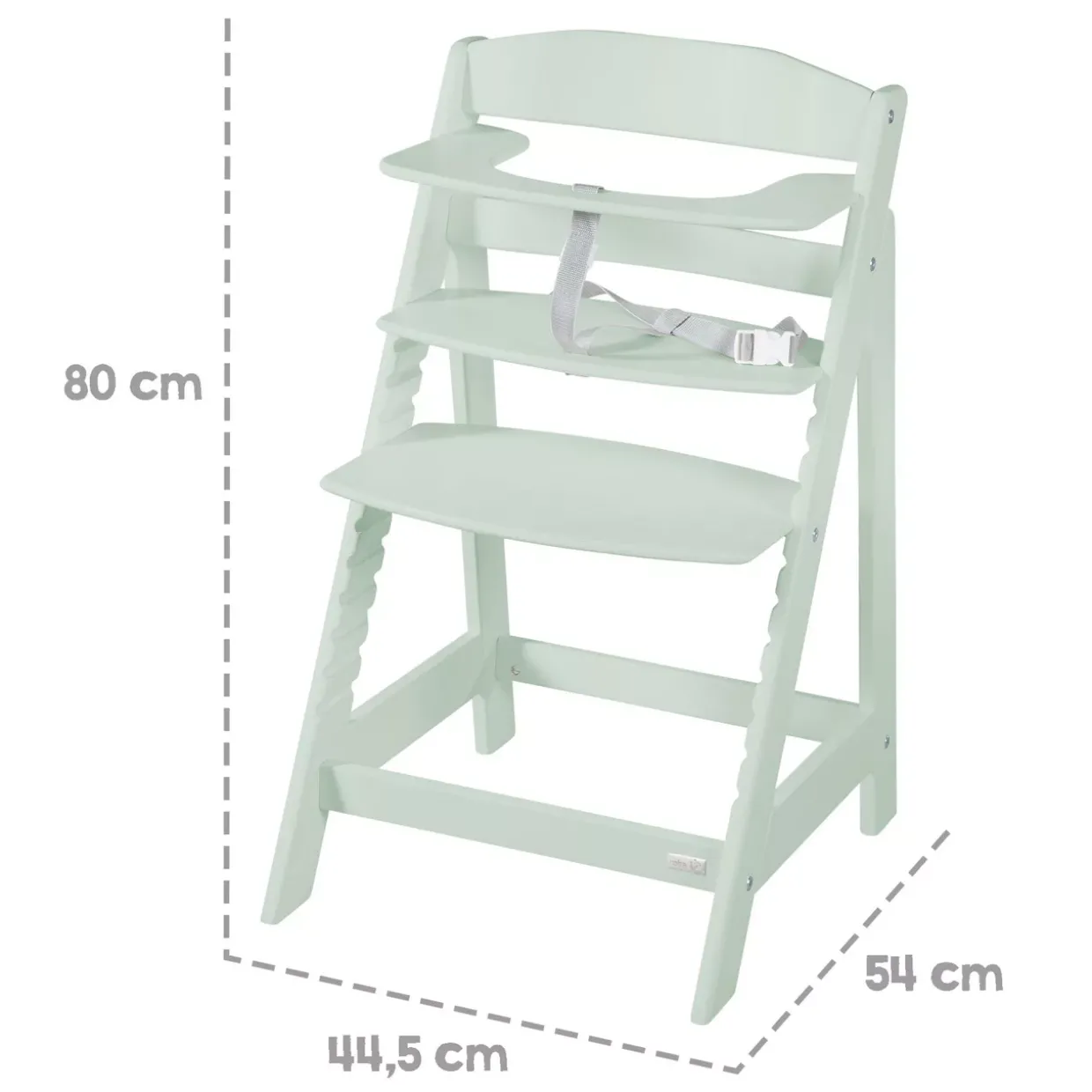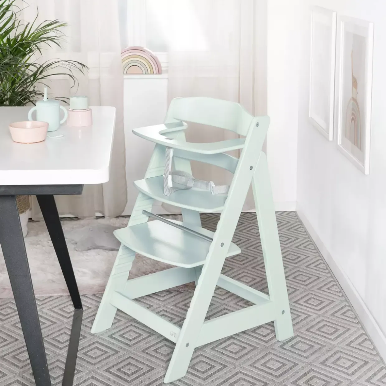 Mintgrün erstrahlt der Sit Up Flex Treppenhochstuhl in seiner modernen Eleganz und zieht alle Blicke auf sich. Gefertigt aus hochwertigem Holz, verbindet er Stabilität mit einem zeitgemäßen Design. Die lackierte Oberfläche sorgt nicht nur für einen glänzenden Look, sondern erleichtert auch die Pflege und schützt das Material vor Abnutzung.
