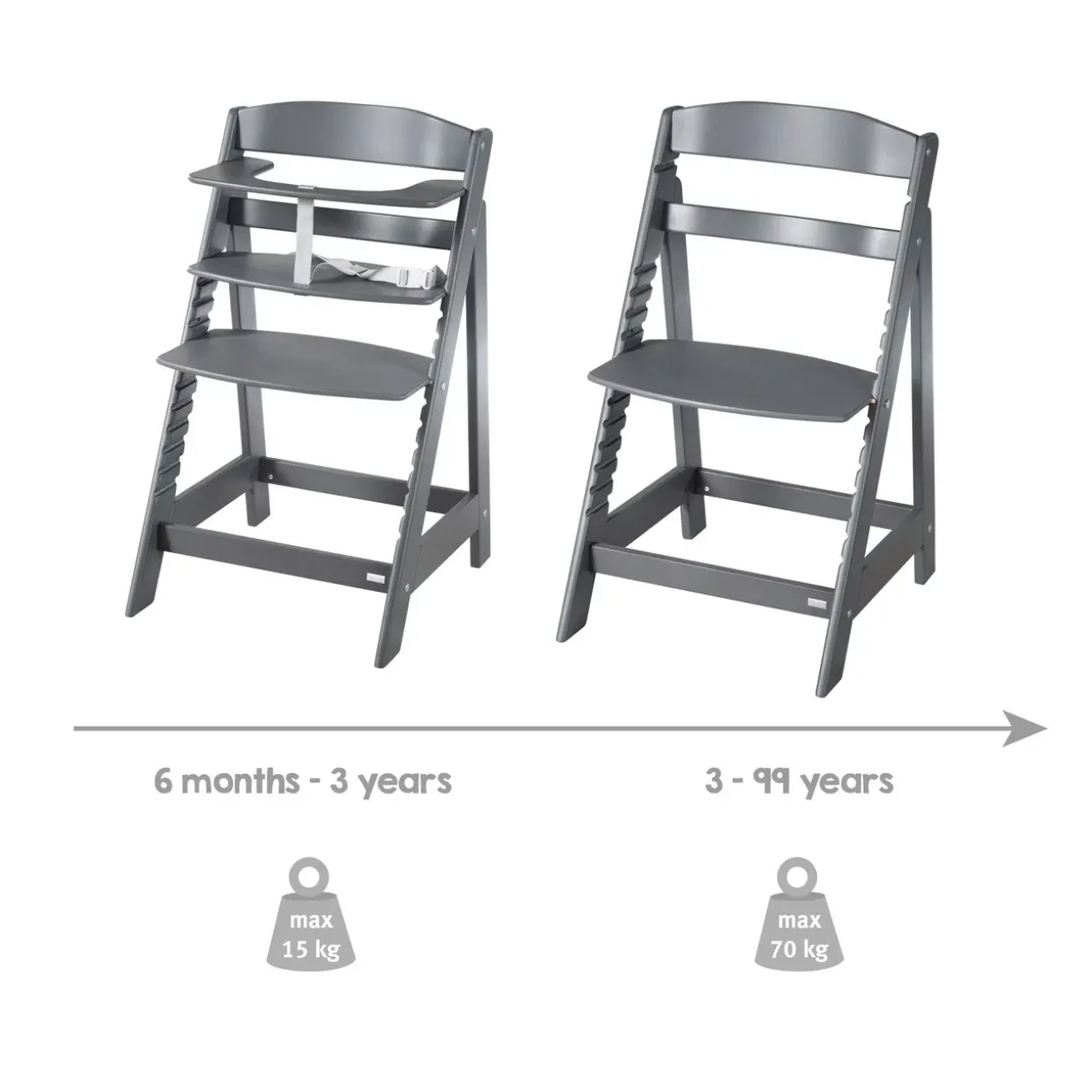 Anthrazit steht für zeitlose Eleganz und fügt sich nahtlos in moderne Wohnkonzepte ein. Der Sit Up Flex Treppenhochstuhl ist eine gelungene Kombination aus Stil und Funktionalität. Hergestellt aus hochwertigem Holz, bietet dieser Stuhl Stabilität und Langlebigkeit. Die lackierte Oberfläche sorgt für eine glatte und pflegeleichte Struktur, die gleichzeitig Schutz und edlen Glanz bietet.Ein cleveres Design ermöglicht es, den Stuhl flexibel in verschiedenen Wohnbereichen zu nutzen. Die moderne Formsprache unterstreicht seine Anpassungsfähigkeit und macht ihn zu einem vielseitigen Begleiter im Alltag. Durch die ausgewogene Materialauswahl ergibt sich ein robustes und dennoch ästhetisch ansprechendes Möbelstück.Besonders hervorzuheben ist die Funktionalität, die dieser Treppenhochstuhl bietet. Er ist nicht nur ein Sitzmöbel, sondern auch eine praktische Unterstützung im Haushalt. Die durchdachte Konstruktion verbindet Sicherheit mit Komfort und ist ideal für verschiedene Altersgruppen.Verleihen Sie Ihrem Zuhause mit dem Sit Up Flex Treppenhochstuhl einen Hauch von moderner Raffinesse. Seine durchdachten Eigenschaften und der ansprechende Look machen ihn zu einem unverzichtbaren Bestandteil Ihrer Einrichtung. Erleben Sie die perfekte Symbiose aus Design und Funktionalität.
