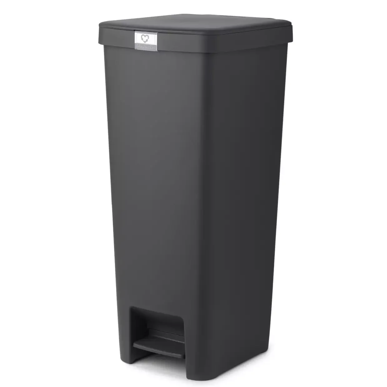 Der moderne Stil des Treteimers StepUp zieht alle Blicke auf sich. Mit seiner eleganten Farbe in Dunkelgrau fügt er sich nahtlos in jede zeitgemäße Einrichtung ein. Gefertigt aus robustem Kunststoff, vereint der Treteimer Langlebigkeit mit einem leichten Gewicht, das den täglichen Gebrauch erleichtert. Die integrierte Metallkomponente aus Stahl sorgt für zusätzliche Stabilität und verleiht dem Design eine hochwertige Note.