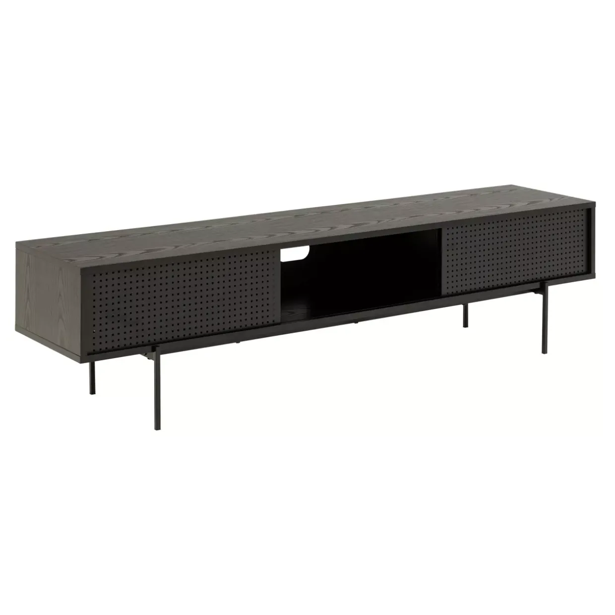 Nicht nur das Design spricht für sich, sondern auch die Funktionalität. Die Schiebetür ermöglicht einen flexiblen Zugriff auf Ihre Geräte, während sie gleichzeitig einen geschlossenen Stauraum bietet, um kleine Gegenstände diskret zu verstauen. Ob im Wohnzimmer oder im Heimkino, Angus fügt sich nahtlos in verschiedene Einrichtungsstile ein. Durch seine moderne und dennoch zeitlose Gestaltung wird er zu einem Blickfang in jedem Raum.