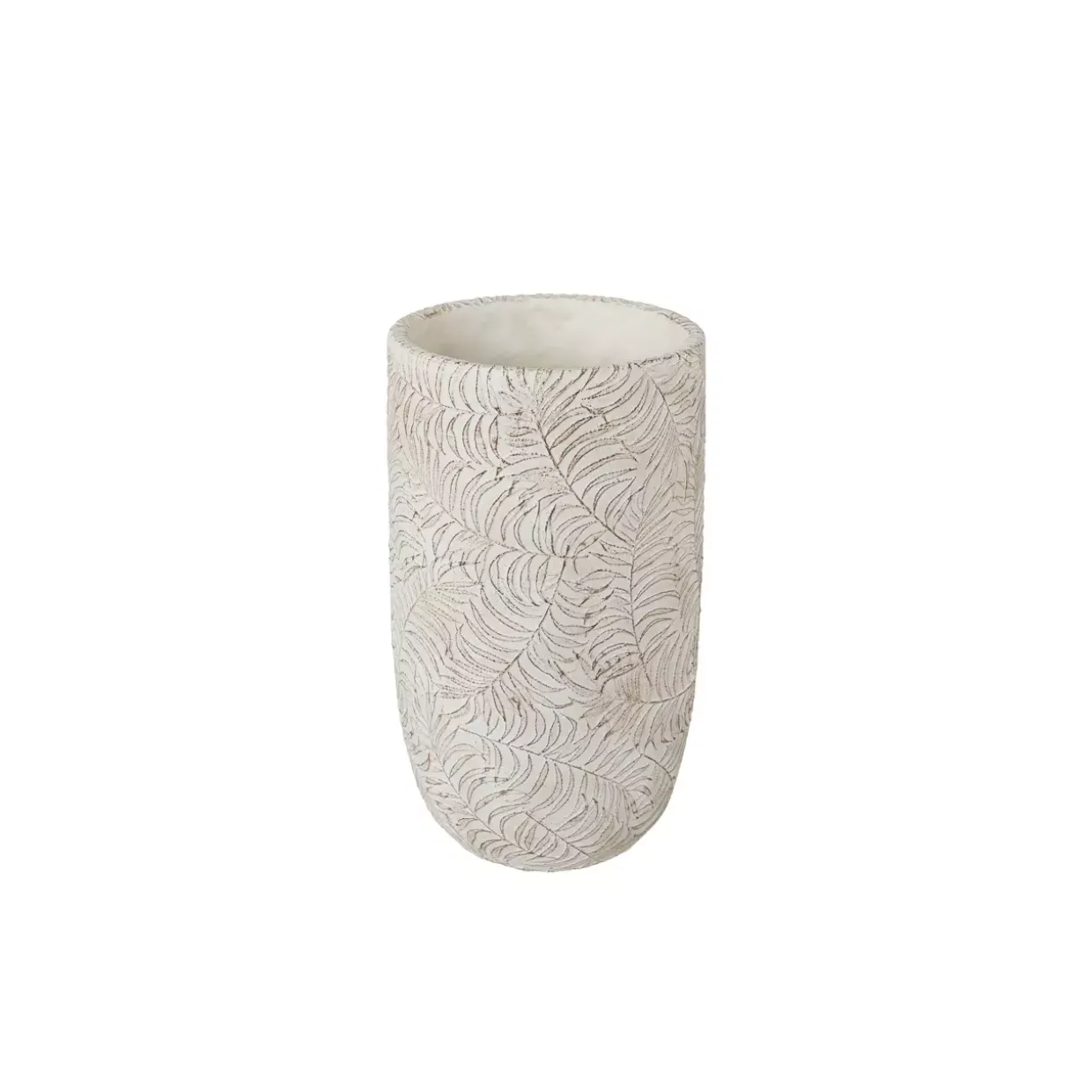 Der elegante Übertopf mit Blattdekor beeindruckt durch seinen konventionellen Stil, der zeitlose Eleganz in jedes Ambiente bringt. In einem sanften Creme-Ton gehalten, fügt er sich harmonisch in verschiedenste Einrichtungsstile ein und schafft eine beruhigende Atmosphäre.