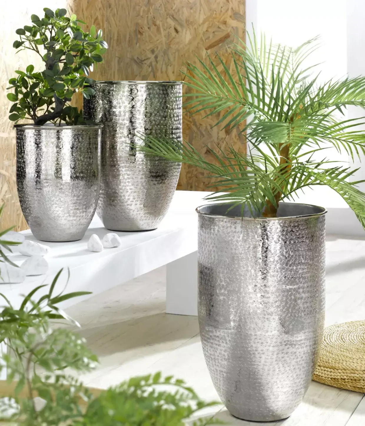 Aluminium als Material verleiht diesem Übertopf eine elegante und zugleich robuste Anmutung, die sowohl in modernen als auch in klassischen Umgebungen harmoniert. Die silberne Farbgebung sorgt für einen zeitlosen Look, der sich nahtlos in verschiedenste Einrichtungsstile einfügt. Durch die Verwendung von Metall wird nicht nur eine hohe Langlebigkeit gewährleistet, sondern auch ein geringes Gewicht, was den Übertopf flexibel und leicht handhabbar macht.