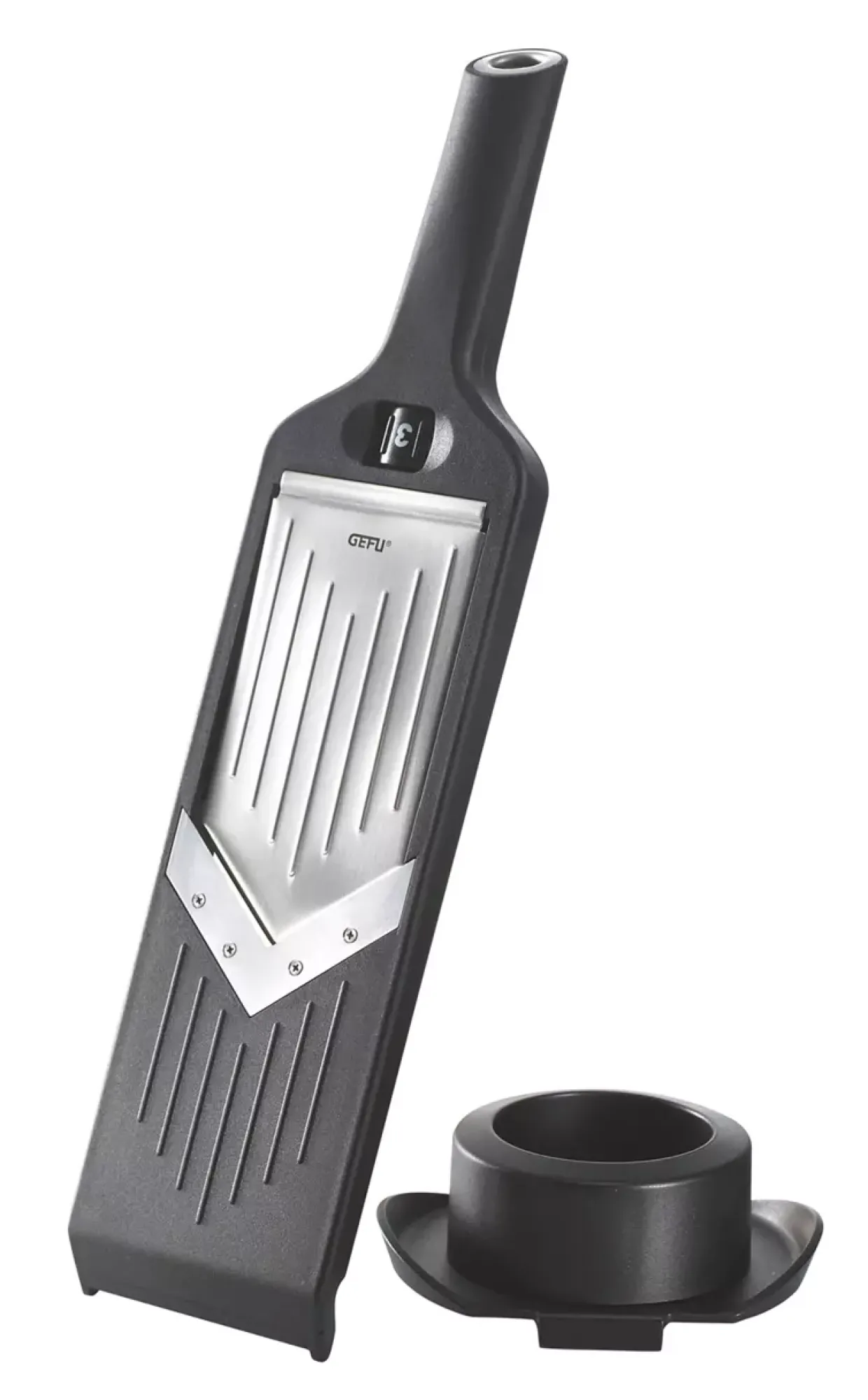 Vielseitigkeit in der Küche bietet der kompakte V-Hobel VIOLI®, der mit seinen fünf einstellbaren Schnittstärken von 1 bis 5 mm überzeugt. Die Kombination aus hochwertigem Kunststoff und robustem Metall, darunter Edelstahl und Stahl, garantiert Langlebigkeit und Stabilität. Besonders praktisch: Die Klinge kann bei Bedarf ausgetauscht werden und besteht aus japanischem Klingenstahl, der für seine Schärfe bekannt ist.