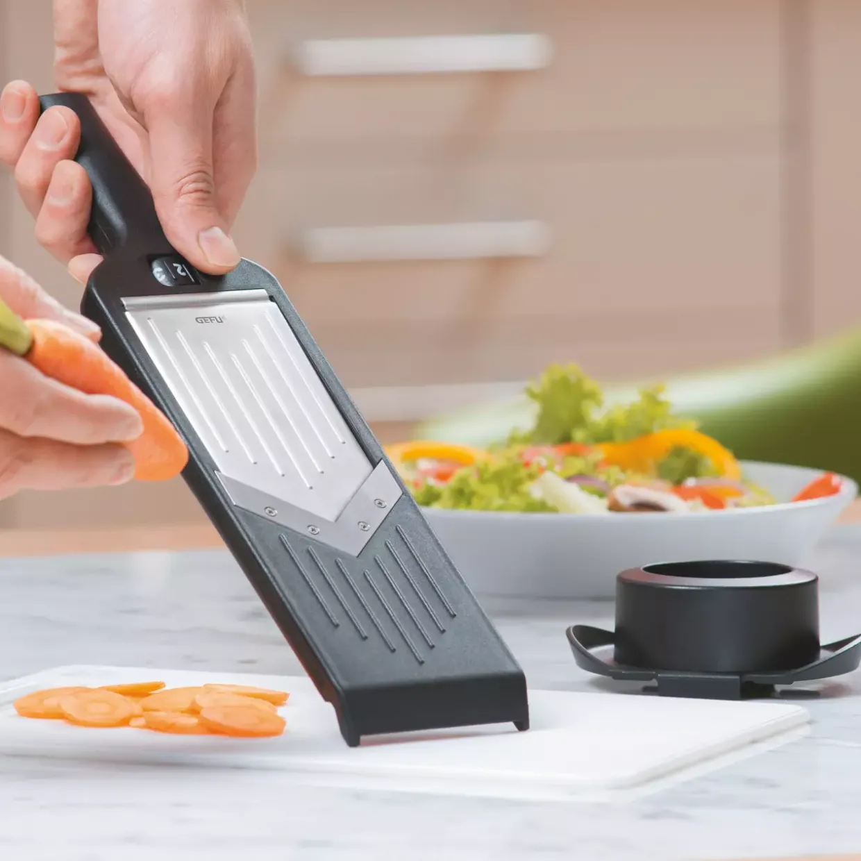Als zuverlässiger Küchenhelfer erfüllt dieses Modell die Anforderungen an Lebensmittelsicherheit durch seine lebensmittelechten Materialien. Ganzjährig einsetzbar, eignet sich der VIOLI® für verschiedenste Schneidarbeiten, von dünnen Gemüsescheiben bis hin zu dickeren Obststücken.