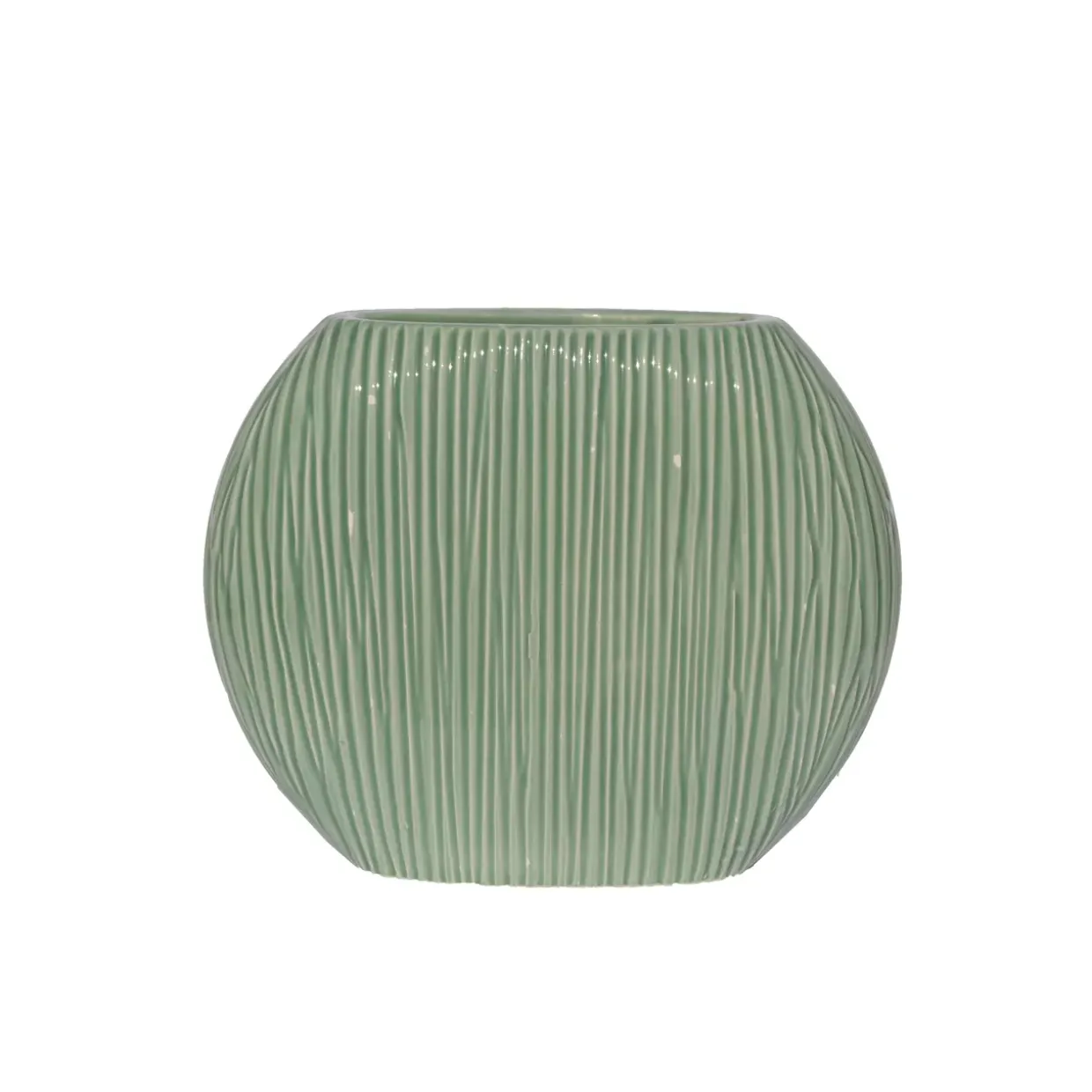 Die rechteckige Form dieser Vase verleiht Ihrem Raum eine moderne Eleganz. In einem beruhigenden Salbeiton gehalten, fügt sich dieses dekorative Element harmonisch in verschiedene Einrichtungsstile ein. Dank des robusten Steinguts, aus dem sie gefertigt ist, überzeugt die Vase durch ihre Langlebigkeit und hohe Qualität.