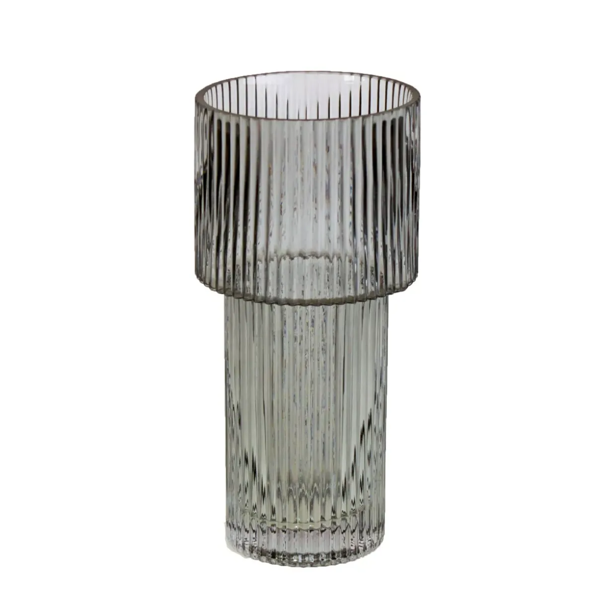 Ein moderner Stil prägt die Gestaltung dieser eleganten Vase. In einem sanften Grau gehalten, fügt sie sich nahtlos in verschiedenste Raumkonzepte ein und verleiht jedem Interieur eine zeitlose Eleganz. Das Glas, aus dem sie gefertigt ist, verleiht der Vase eine besondere Leichtigkeit und Transparenz, die das Licht auf faszinierende Weise einfängt und reflektiert.