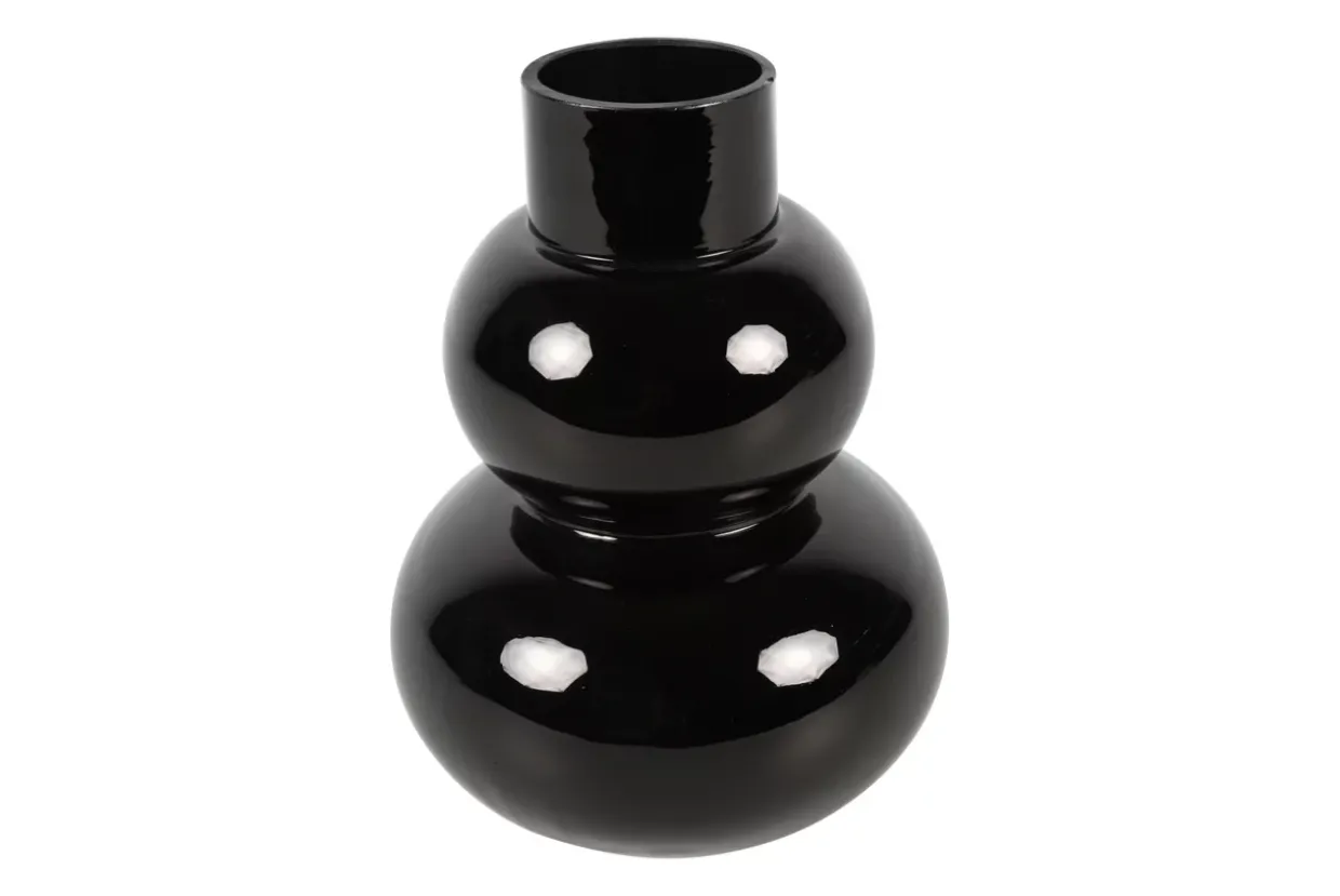 Die Form dieser Vase ist rund und verleiht jedem Raum eine harmonische Ausstrahlung. Schwarz als Farbe bringt Eleganz und Tiefe in Ihr Ambiente, während der moderne Stil perfekt in zeitgenössische Einrichtungsstile integriert werden kann. Glas, als Material gewählt, reflektiert das Licht auf besondere Weise und sorgt für faszinierende Lichteffekte, die die Vase in Szene setzen.
