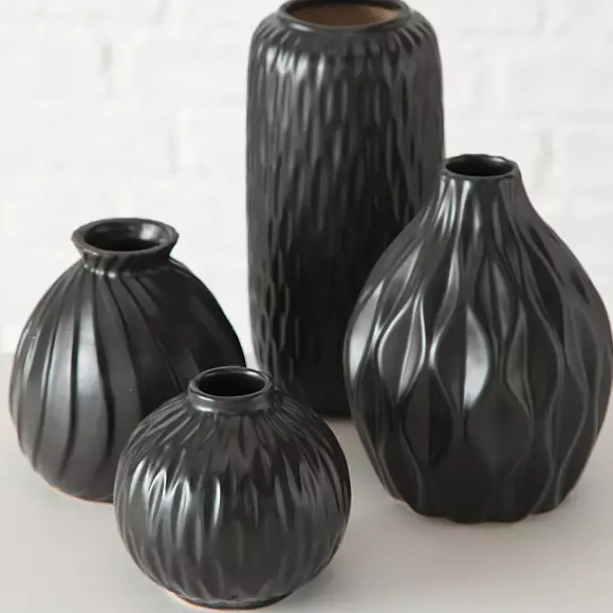 Schwarz als Farbe der Wahl ermöglicht eine Vielzahl von Einsatzmöglichkeiten, von der klassischen bis zur modernen Dekoration. Die Vase kann sowohl alleinstehend als auch in Kombination mit anderen Elementen ein eindrucksvolles Bild abgeben. Dank ihrer zurückhaltenden Eleganz eignet sie sich sowohl für private Wohnräume als auch für repräsentative Geschäftsräume.