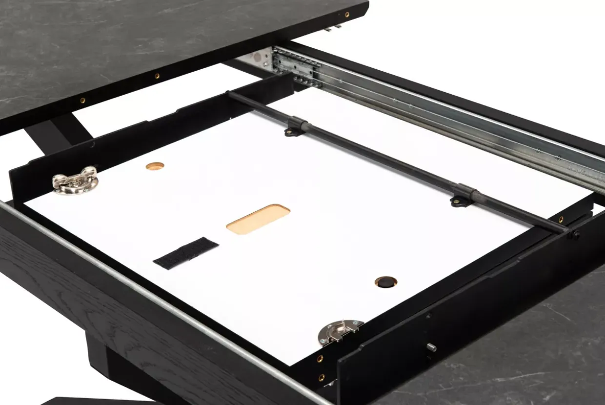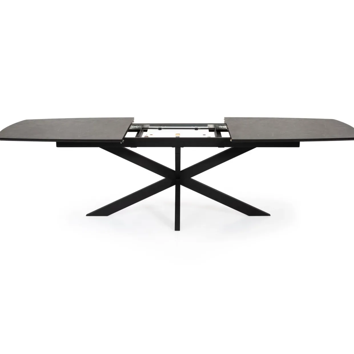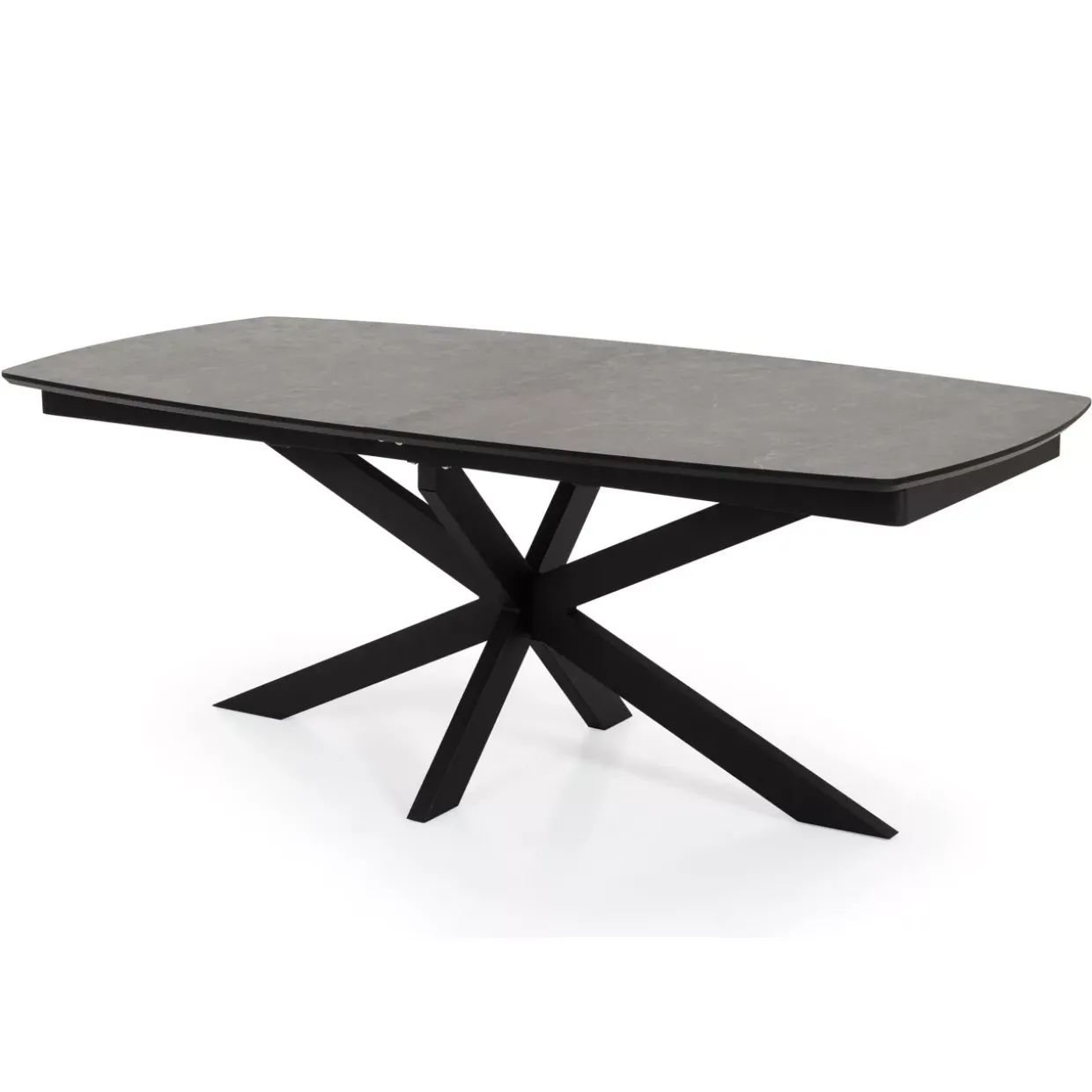 Ein eleganter ovaler Formfaktor definiert diesen modernen Tisch, der mit seiner ausziehbaren Funktionalität überzeugt. Die Kombination aus Metall und Holzwerkstoff verleiht ihm eine robuste Struktur und zeitlose Ästhetik. Der X-Fuß sorgt für einen stabilen Stand und verleiht dem Design eine zusätzliche Note von Raffinesse.Ein Highlight ist die HPL Laminat-Tischplatte, die nicht nur durch ihre Beständigkeit besticht, sondern auch durch ihre pflegeleichte Oberfläche. Perfekt für den Alltag und besondere Anlässe. Die Farbgebung in stilvollem Schwarz und L Caviar Silver fügt sich nahtlos in moderne Wohnkonzepte ein und bietet vielfältige Kombinationsmöglichkeiten.Ein weiterer Vorteil ist die integrierte Tischverlängerung um 70 cm, die Flexibilität für unterschiedliche Anlässe bietet. Ob für ein entspanntes Abendessen im kleinen Kreis oder eine größere Zusammenkunft, dieser Tisch passt sich Ihren Bedürfnissen an. Die hochwertige Verarbeitung und das durchdachte Design machen ihn zu einem langlebigen Begleiter in Ihrem Zuhause.Als Auszugtisch vereint er Funktionalität und Stil in einem Möbelstück, das sowohl praktisch als auch ästhetisch ansprechend ist. Genießen Sie die Vielseitigkeit und das durchdachte Design, das sich Ihrem Lebensstil anpasst und Ihrem Raum eine moderne Note verleiht.