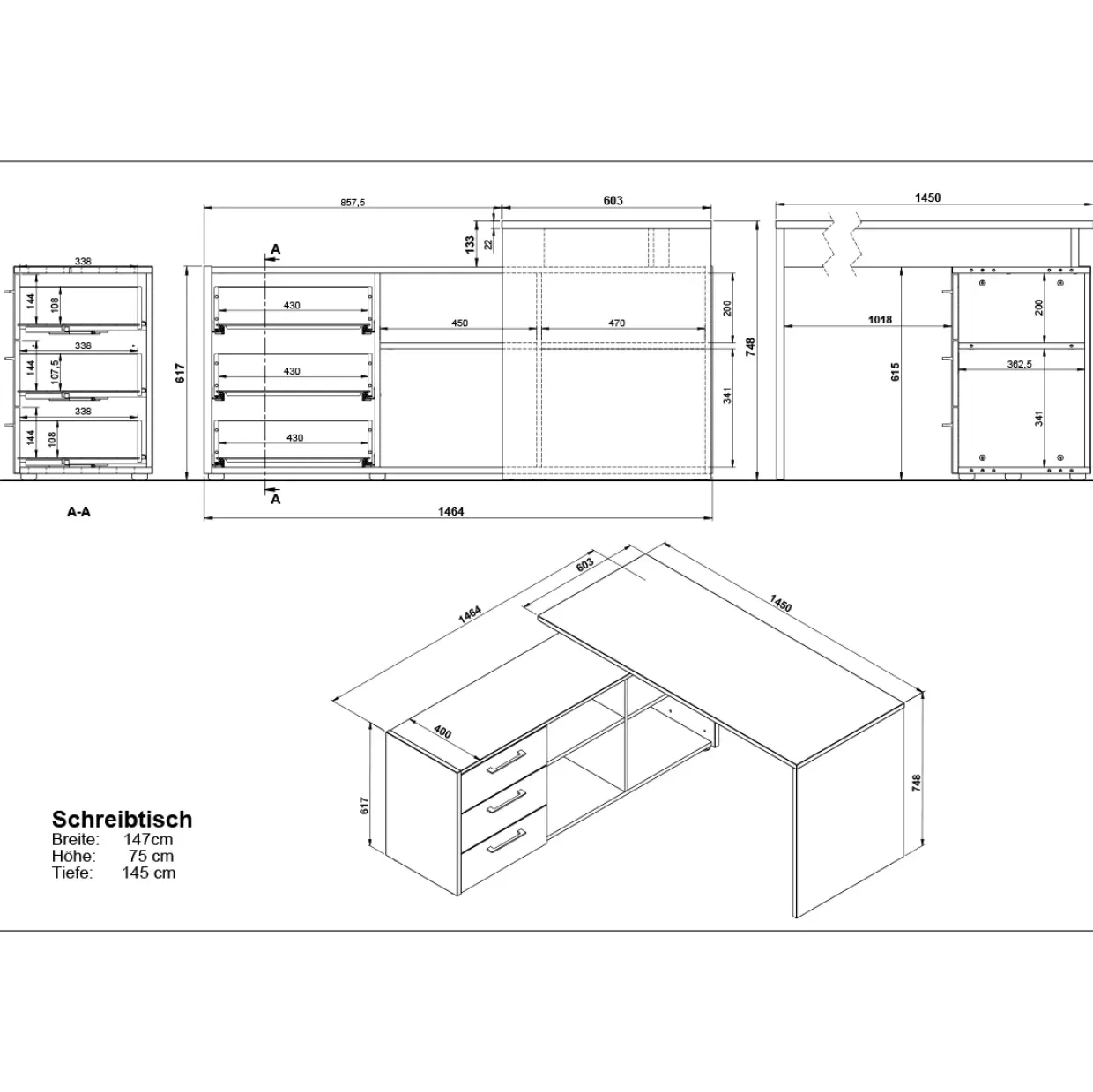 bestehend aus: 1 Eckschreibtisch