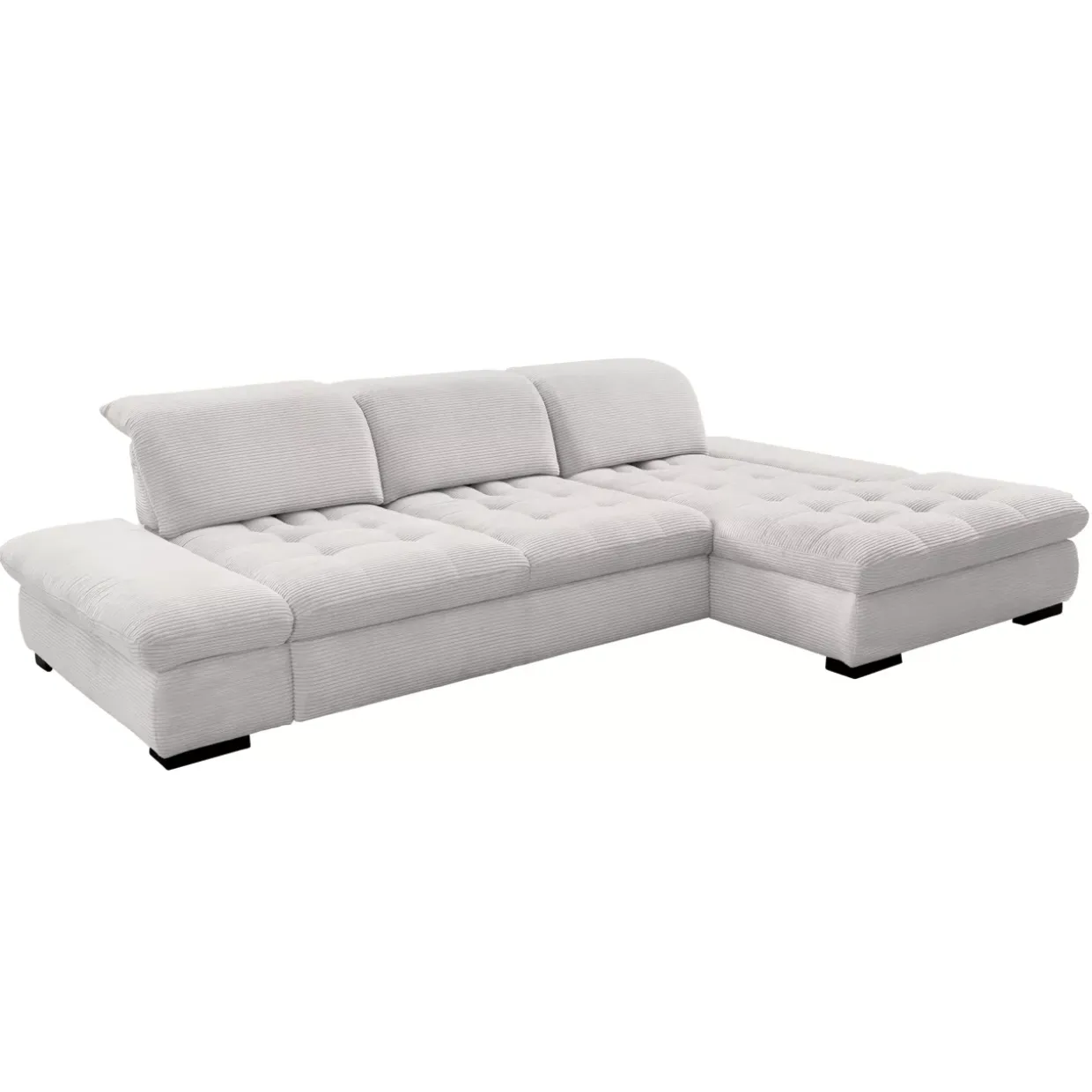 Der Bezug aus Cord in harmonischer Kombination mit Stoff und Holz verleiht dem Sofa eine zeitlose Ästhetik, die in jedes moderne Zuhause passt. Die Polsterung aus hochwertigem PUR-Schaum sorgt für ein angenehmes Sitzerlebnis, während der Echtbezug auf der Rückseite das Gesamtbild abrundet und höchste Qualität verspricht.