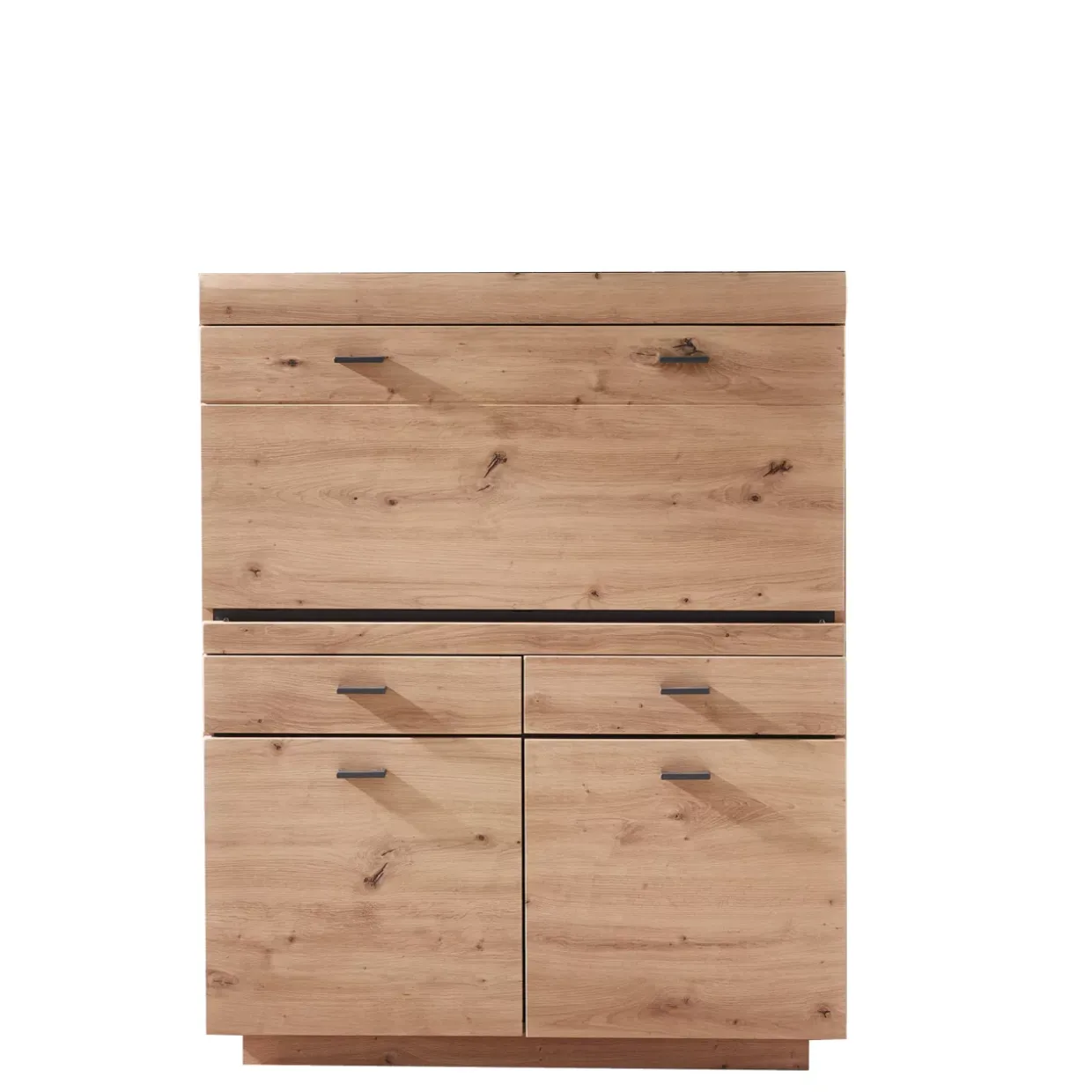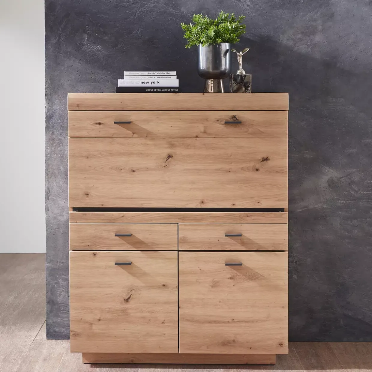 Einen modernen Stil kombiniert der Schreibtisch Lavado mit der warmen Ausstrahlung von Artisan Eiche und einer eleganten Graphit-Nuance. Dieses Möbelstück aus hochwertigem Holzwerkstoff bietet nicht nur ein ansprechendes Design, sondern auch durchdachte Funktionen für Ihr Home Office. Mit einem Tablarauszug ausgestattet, bietet der Schreibtisch eine flexible Arbeitsfläche, die sich bei Bedarf erweitern lässt. Die sanfte Softclose-Funktion der Schubladen sorgt für ein leises und müheloses Schließen, während die Türdämpfer für zusätzlichen Komfort sorgen.