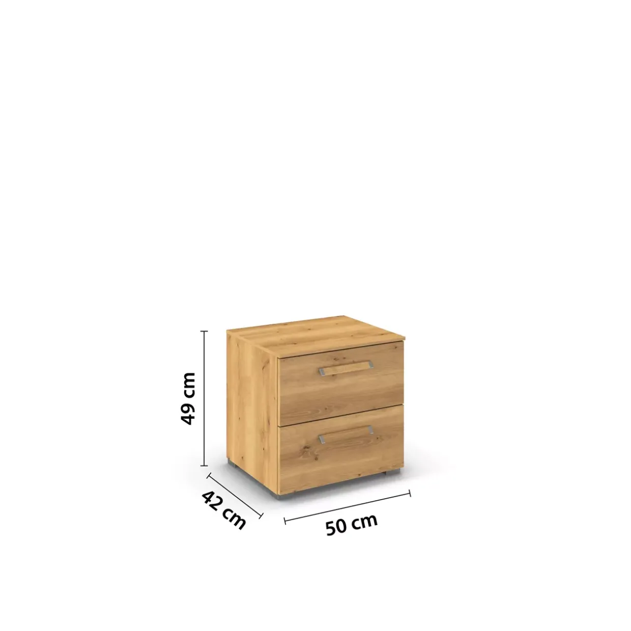 Besondere Aufmerksamkeit verdient die Ausstattung mit zwei Schubkästen, die über eine Soft-Close-Funktion verfügen. Diese sorgt nicht nur für ein sanftes und geräuschloses Schließen, sondern trägt auch zur Langlebigkeit des Materials bei. So bleibt der Nachttisch über Jahre hinweg ein funktionaler Begleiter an Ihrer Seite.