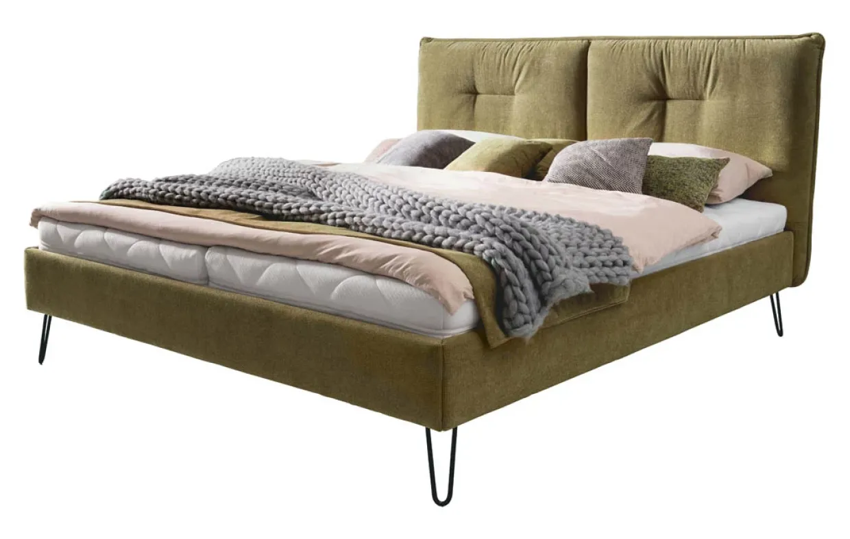 Ein Hauch von Glamour trifft auf edle Materialien: Das Pallas Polsterbett vereint elegantes Design mit hochwertigen Stoffen und robustem Metall. Die tiefgrüne Farbgebung verleiht Ihrem Schlafzimmer eine beruhigende und dennoch luxuriöse Atmosphäre. Stilvoll und dennoch funktional, fügt sich das Bett nahtlos in moderne und klassische Raumkonzepte ein. Die Kombination von Stoff und Metall bietet nicht nur ästhetische Vorzüge, sondern auch Stabilität und Langlebigkeit. Diese Materialwahl sorgt dafür, dass das Bett sowohl ein Blickfang als auch ein langlebiges Möbelstück ist.Ruhe und Entspannung sind in einem Schlafzimmer essenziell, und genau dies ermöglicht das Pallas Polsterbett. Die gepolsterte Oberfläche sorgt für Komfort und Gemütlichkeit, während das solide Metallgestell Stabilität gewährleistet. So entsteht eine harmonische Verbindung von Design und Funktionalität, die Ihren Schlafbereich in eine wahre Wohlfühloase verwandelt.Die Eleganz des Glam-Stils wird durch die sorgfältig ausgewählten Materialien und die harmonische Farbgebung unterstrichen. In einem solchen Ambiente können Sie sich nicht nur erholen, sondern auch neue Energie tanken. Das Pallas Polsterbett steht für zeitlose Eleganz und unvergleichlichen Komfort, der jedem Schlafzimmer eine besondere Note verleiht.