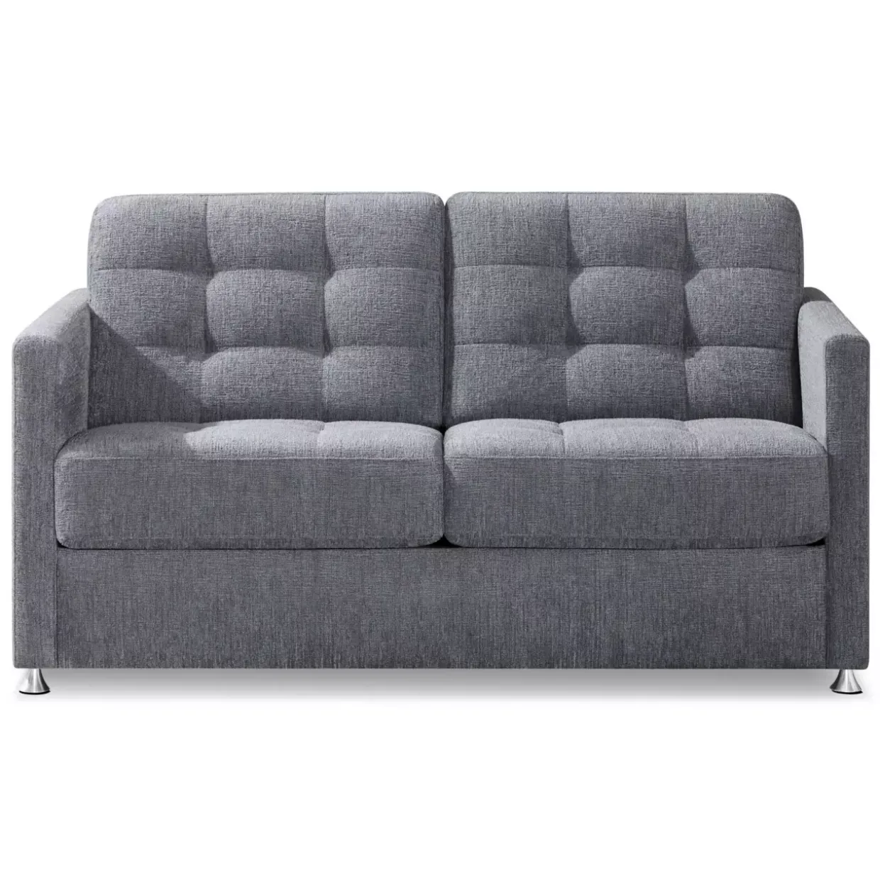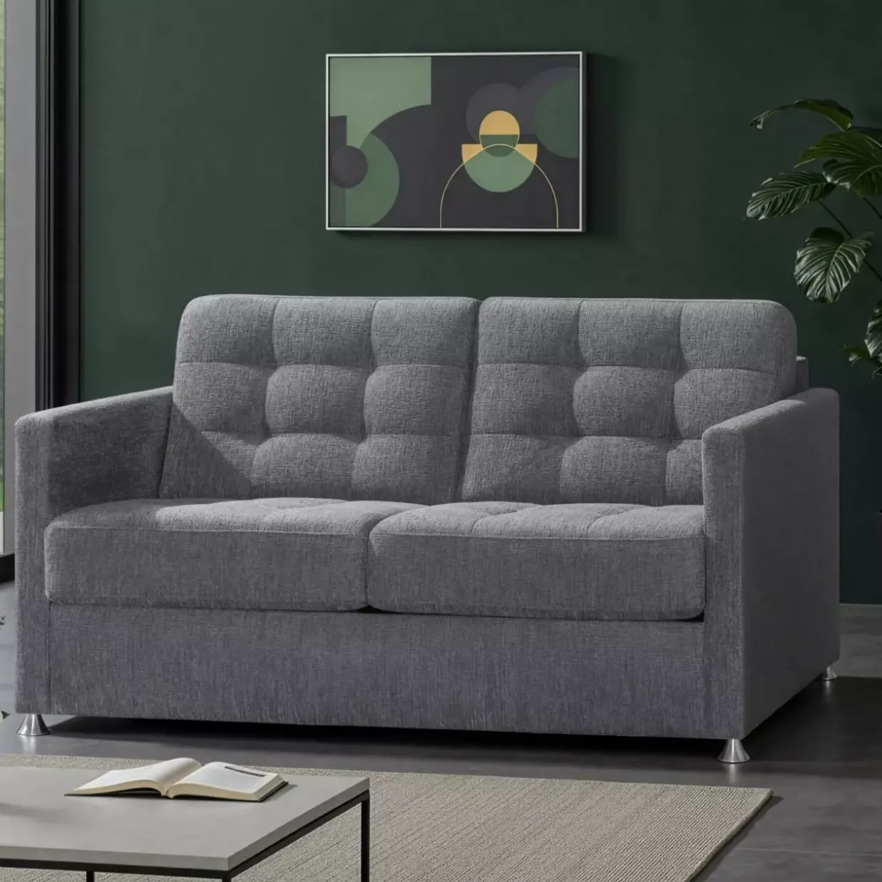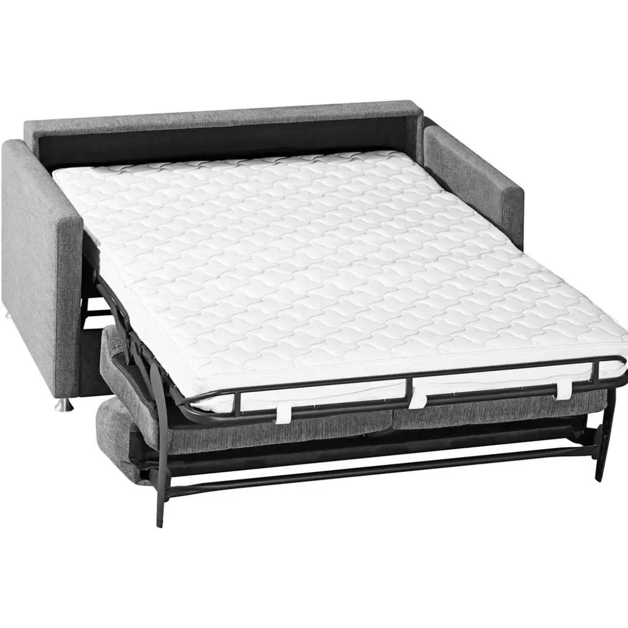 Ein Highlight des Cicero Schlafsofas ist die integrierte Kaltschaummatratze mit einer Stärke von 12 cm, die mit einem abnehmbaren und chemisch waschbaren Bezug versehen ist. Diese Funktionalität bietet nicht nur hervorragenden Komfort, sondern auch eine einfache Pflege, die den Alltag erleichtert. Der dunkle Grauton des Stoffes in Kombination mit den Chromakzenten verleiht dem Sofa eine moderne und gleichzeitig zeitlose Eleganz, die sich nahtlos in jedes klassische Wohnambiente einfügt.