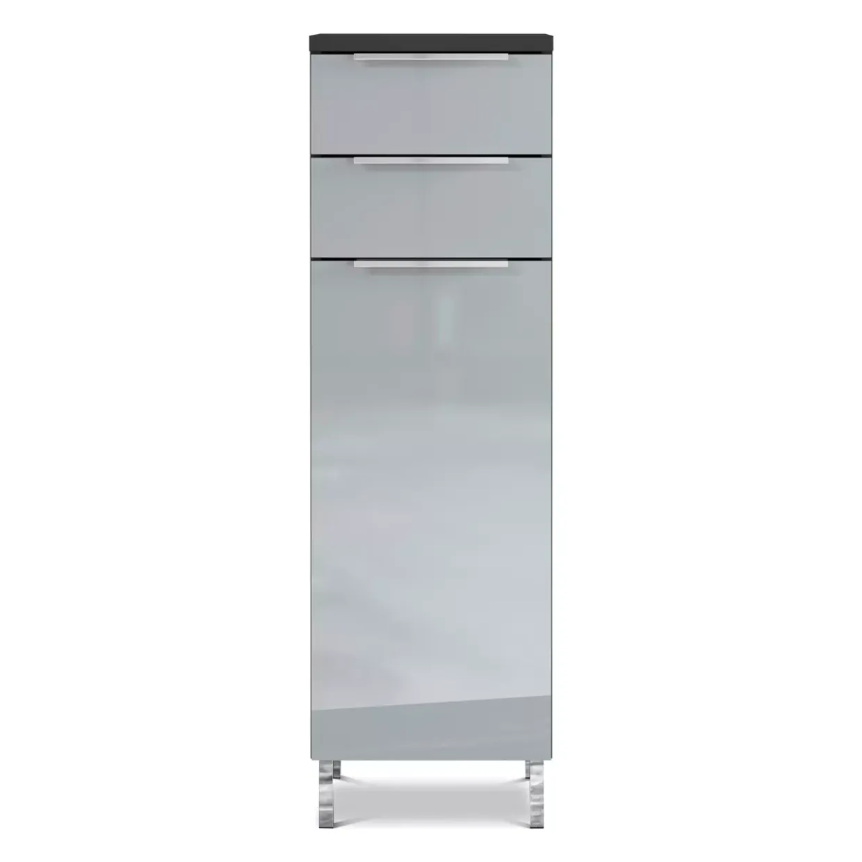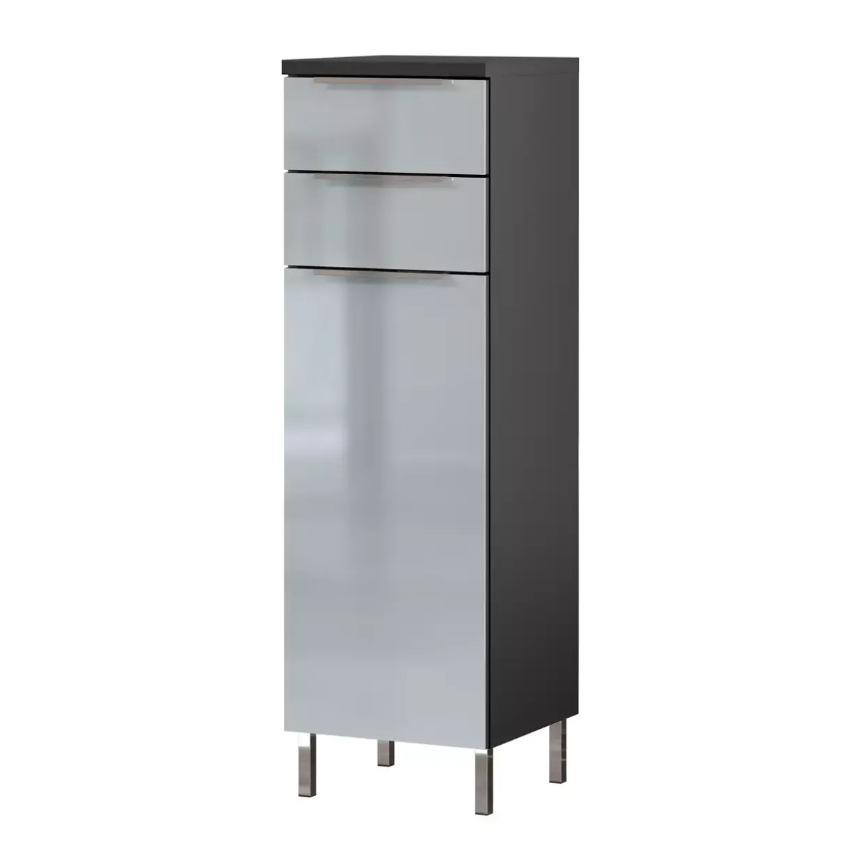 Ein herausragendes Merkmal dieses Midischranks ist seine elegante Oberfläche aus melaminharzbeschichtetem Material, das Schutz vor Feuchtigkeit und Kratzern bietet. Der Corus Midischrank beeindruckt durch seine modernen Akzente und die Kombination aus Glas, Holzwerkstoff und Metall. Mit seinen Maßen von 34 x 112 x 34 cm fügt er sich perfekt in jedes Badezimmer ein und bietet gleichzeitig reichlich Stauraum.