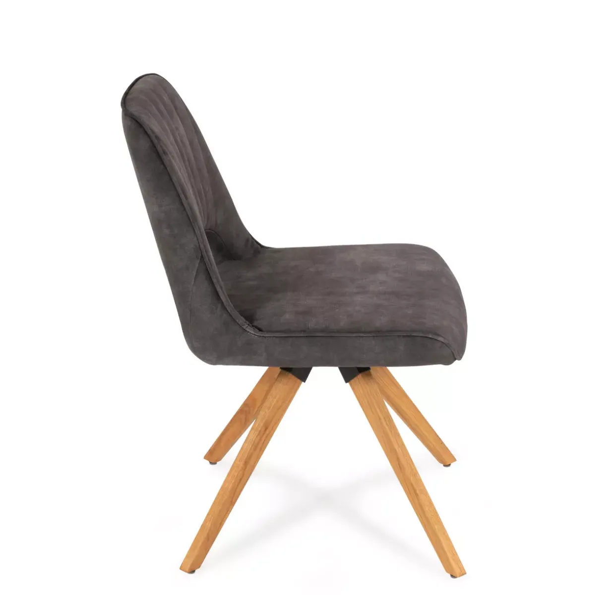 Die gepolsterte Rückenlehne, verziert mit eleganter Längssteppung, sorgt für zusätzlichen Komfort und unterstützt eine gesunde Sitzhaltung. Polyester als Teil der Materialauswahl garantiert Pflegeleichtigkeit und Strapazierfähigkeit. Diese Eigenschaften machen den Stuhl zu einem idealen Begleiter für den Alltag.