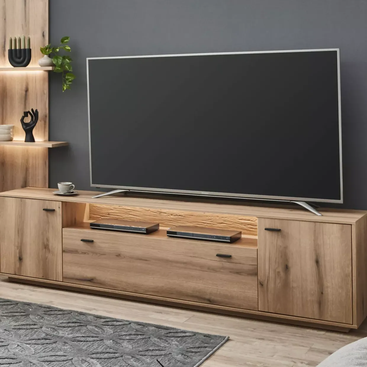 Farbton: Eiche Evoke Melamin / sichtbare Rückwände: Eiche Evoke sandgestrahlte Optik