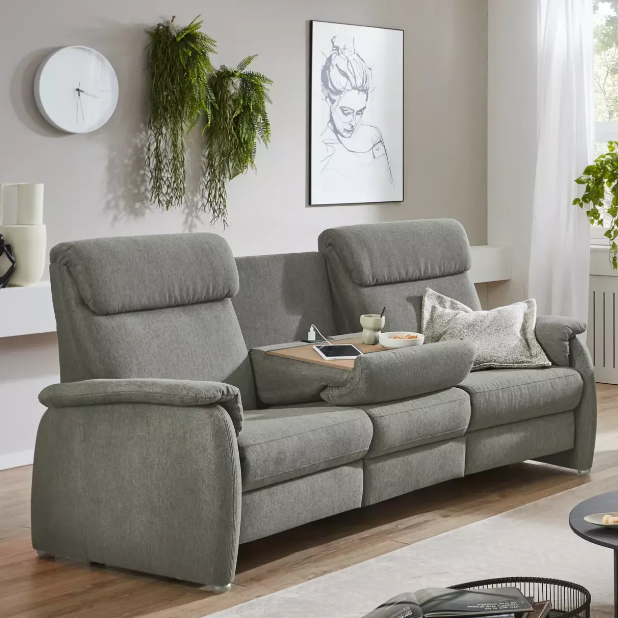 Melrose Silver und Aluminium vereinen sich mit Eiche furniert in einem harmonischen Zusammenspiel, das dem Trapez-Sofa eine zeitlose Eleganz verleiht. Stoff und Metall als Materialien bilden die solide Basis für ein langlebiges Möbelstück, das sowohl ansprechend als auch funktional ist. Die Polsterung mit Federkern sorgt für optimalen Sitzkomfort und lädt zu entspannten Stunden ein. Viel Wert wird auf Qualität gelegt, was sich im Rückenbezug aus Echtbezug widerspiegelt. Diese Kombination aus hochwertigen Materialien und durchdachtem Design macht das Sofa zu einem stilvollen Begleiter für Ihr Zuhause. Es fügt sich mühelos in eine Vielzahl von Einrichtungsstilen ein und bietet gleichzeitig eine komfortable Sitzgelegenheit für gesellige Runden oder entspannte Abende.Der konventionelle Stil des Sofas strahlt eine zeitlose Ästhetik aus, die sich dezent in Ihr Wohnzimmer einfügt. Genießen Sie die komfortable Unterstützung, die die Federkernpolsterung bietet. Ein Sofa, das sowohl in seinem Design als auch in seiner Funktionalität überzeugt und das Potenzial hat, zum Mittelpunkt Ihres Wohnraumes zu werden. Eine Investition in Komfort und Stil, die sich auf lange Sicht auszahlt.