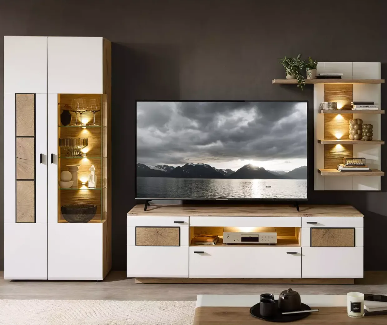 Dieser Vitrinenschrank vereint Funktionalität mit einem modernen Look und wird so zu einem Schmuckstück in Ihrem Zuhause.