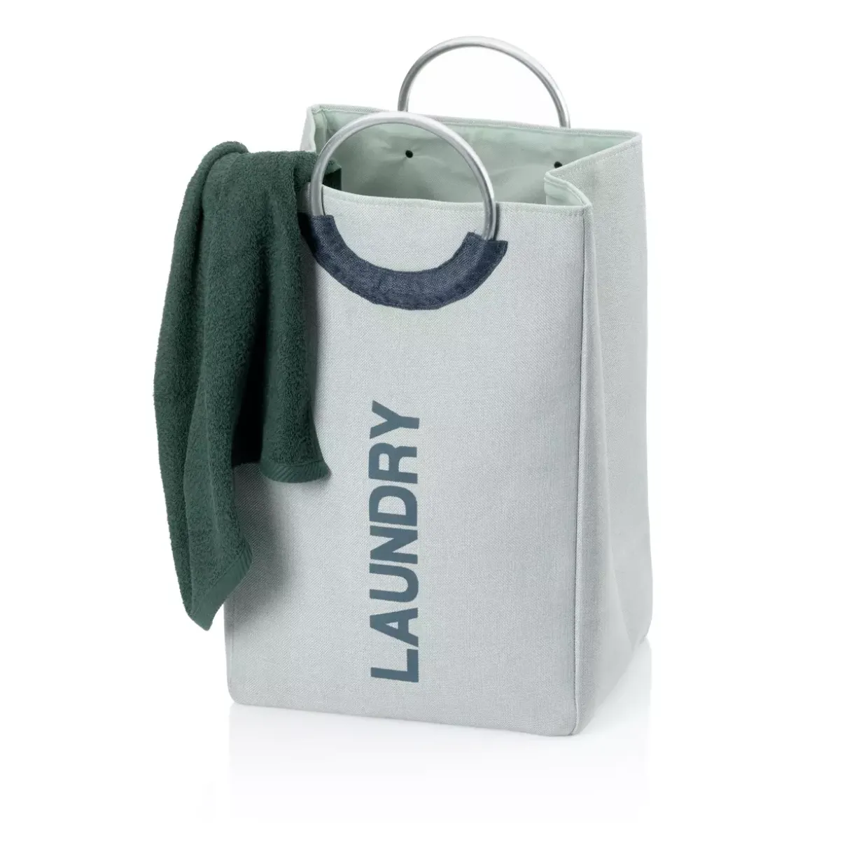 Mit einer Breite von 36 cm, einer Tiefe von 30 cm und einer Höhe von 56 cm bietet der Wäschesack Palma ausreichend Platz für Ihre Wäsche. Der dezente Uni-Stil kombiniert mit einem modernen Schriftmotiv sorgt für ein ansprechendes Design. Zwei schicke Tragegriffe aus Aluminium erleichtern den Transport, sodass Sie Ihre Wäsche mühelos von einem Raum zum anderen bewegen können.