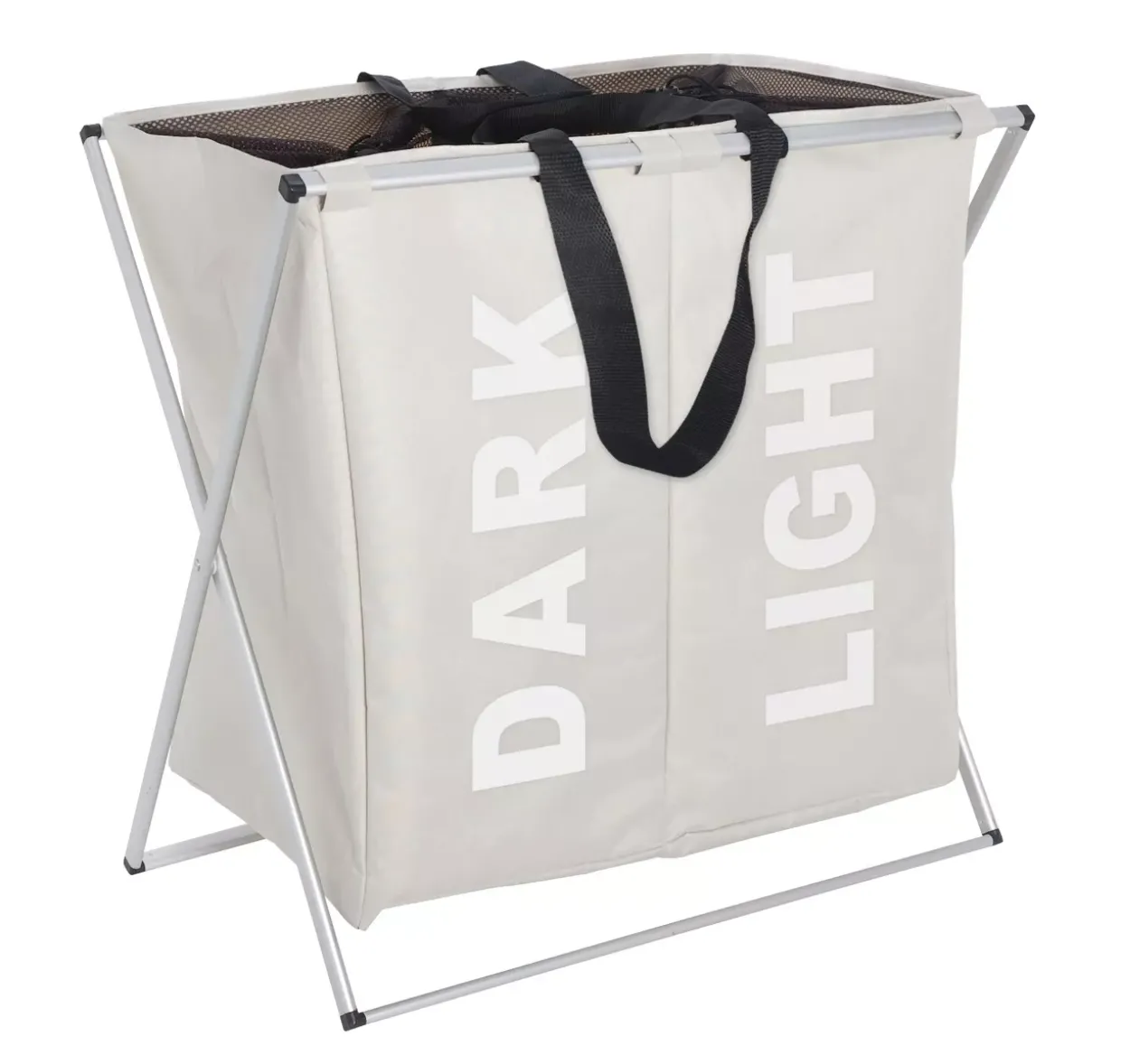 Die durchdachte Farbgestaltung mit einem beigen Wäschesack und schwarzen Griffen harmoniert mühelos mit verschiedenen Einrichtungsstilen. Zwei separate Fächer mit einem großzügigen Fassungsvermögen von jeweils 60 Litern ermöglichen eine einfache Trennung von heller und dunkler Wäsche. Dank des praktischen Dark/Light Schriftzugs behalten Sie stets den Überblick, was wohin gehört.