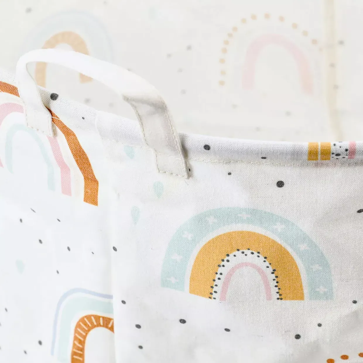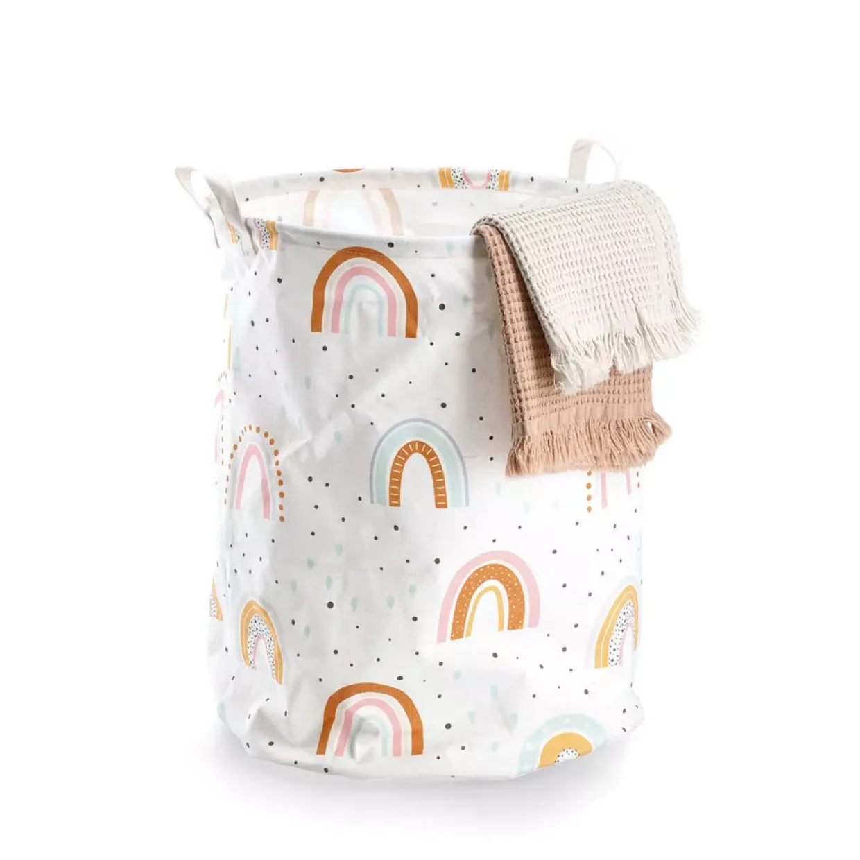 Der Durchmesser von 38 cm bietet ausreichend Platz, um die schmutzige Wäsche der Kleinsten bis zum nächsten Waschtag stilvoll aufzubewahren. Dank der beschichteten Innenseite gestaltet sich die Reinigung des Wäschekorbs unkompliziert und effizient. Kinderfreundliche Motive wie das süße Regenbogen-Design oder der Dino-Druck machen das Ordnung halten auch für die Jüngsten zu einem freudigen Erlebnis.