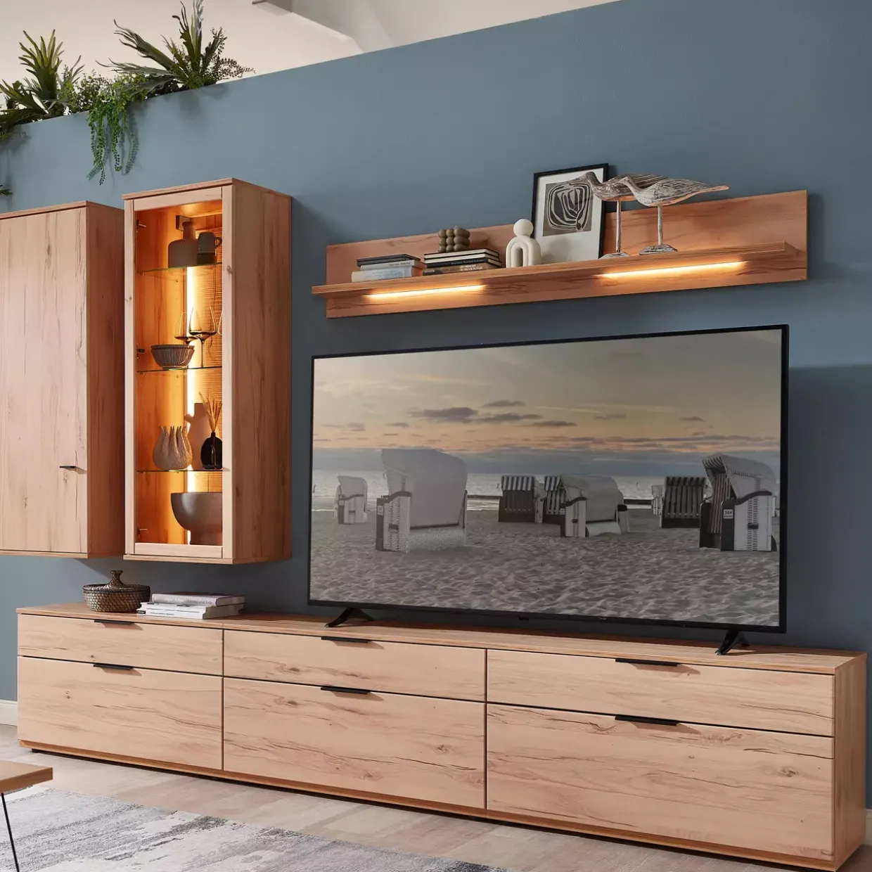Balkenbuche Nachbildung bringt natürliche Wärme in Ihre Wohnräume. Mit dem konventionellen Stil des Wandboards Sellin PAZ.150 schaffen Sie eine harmonische Atmosphäre, die sowohl zeitlos als auch elegant wirkt. Die Verwendung von Holzwerkstoff als Material gewährleistet Stabilität und Langlebigkeit, während die melaminharzbeschichtete Oberfläche des Wandboards für eine pflegeleichte und strapazierfähige Nutzung sorgt.Vielseitig einsetzbar, fügt sich dieses Wandboard nahtlos in verschiedene Wohnkonzepte ein, sei es im Wohnzimmer, Schlafzimmer oder Home Office. Es bietet eine ideale Plattform, um dekorative Elemente, Bücher oder persönliche Erinnerungsstücke stilvoll in Szene zu setzen. Die warme Farbgebung in Balkenbuche Nachbildung harmoniert hervorragend mit anderen Holzmöbeln und unterstreicht ein natürliches Wohnambiente.Durch die robuste Bauweise und die hochwertige Beschichtung bleibt das Wandboard über Jahre hinweg attraktiv und funktional. Das Design vereint ästhetische Ansprüche mit praktischer Anwendung, was es zu einer wertvollen Ergänzung für Ihr Zuhause macht. Entdecken Sie die Möglichkeiten, die dieses Wandboard bietet, und bereichern Sie Ihre Einrichtung mit einem Möbelstück, das sowohl durch seine Optik als auch durch seine Funktionalität besticht.