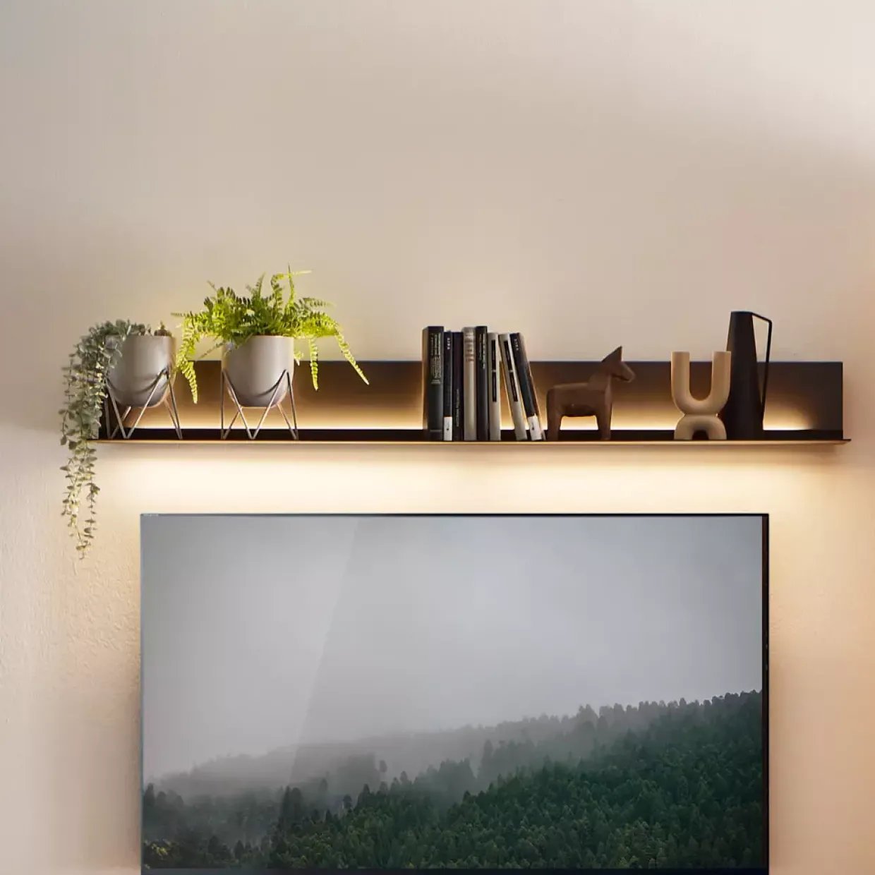 Der moderne Stil des Wandbords schafft eine Verbindung zwischen Funktionalität und Design. Es bietet Platz für Bücher, Dekorationen oder persönliche Erinnerungsstücke und ist gleichzeitig ein Hingucker an jeder Wand. Dabei bleibt es zurückhaltend genug, um nicht den Raum zu dominieren.