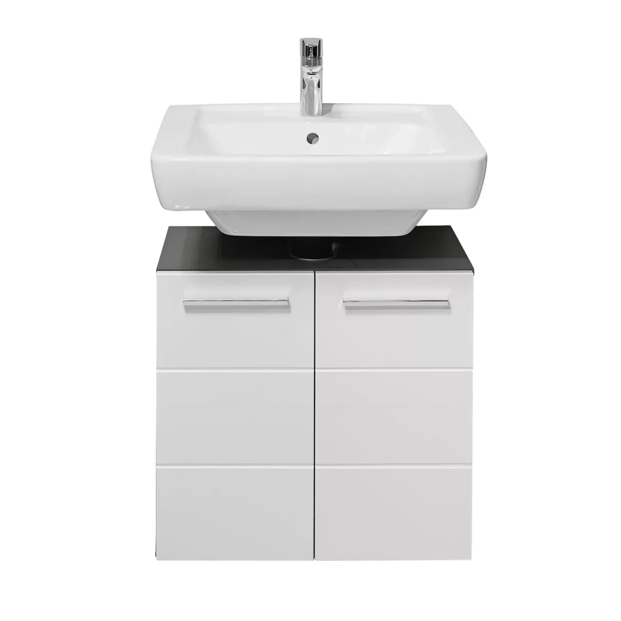 GLOSS WBU 2-trg. Anthrazit/ Weiß Hochgl. BHT ca. 60x 62×31 cmEine harmonische Kombination aus Anthrazit und Weiß Hochglanz verleiht dem Waschbeckenunterschrank