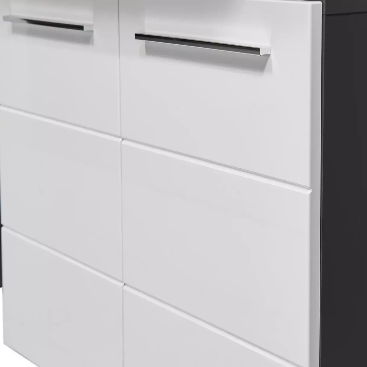 | Color | Korpus Anthrazit / Füße Schwarz / Front Weiss Hochglanz / Griffe Hochglanzchrom |
