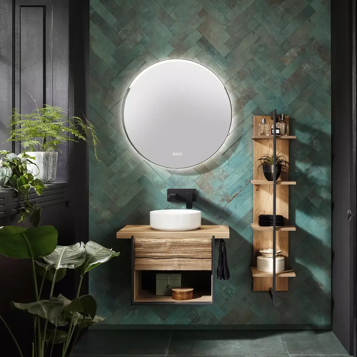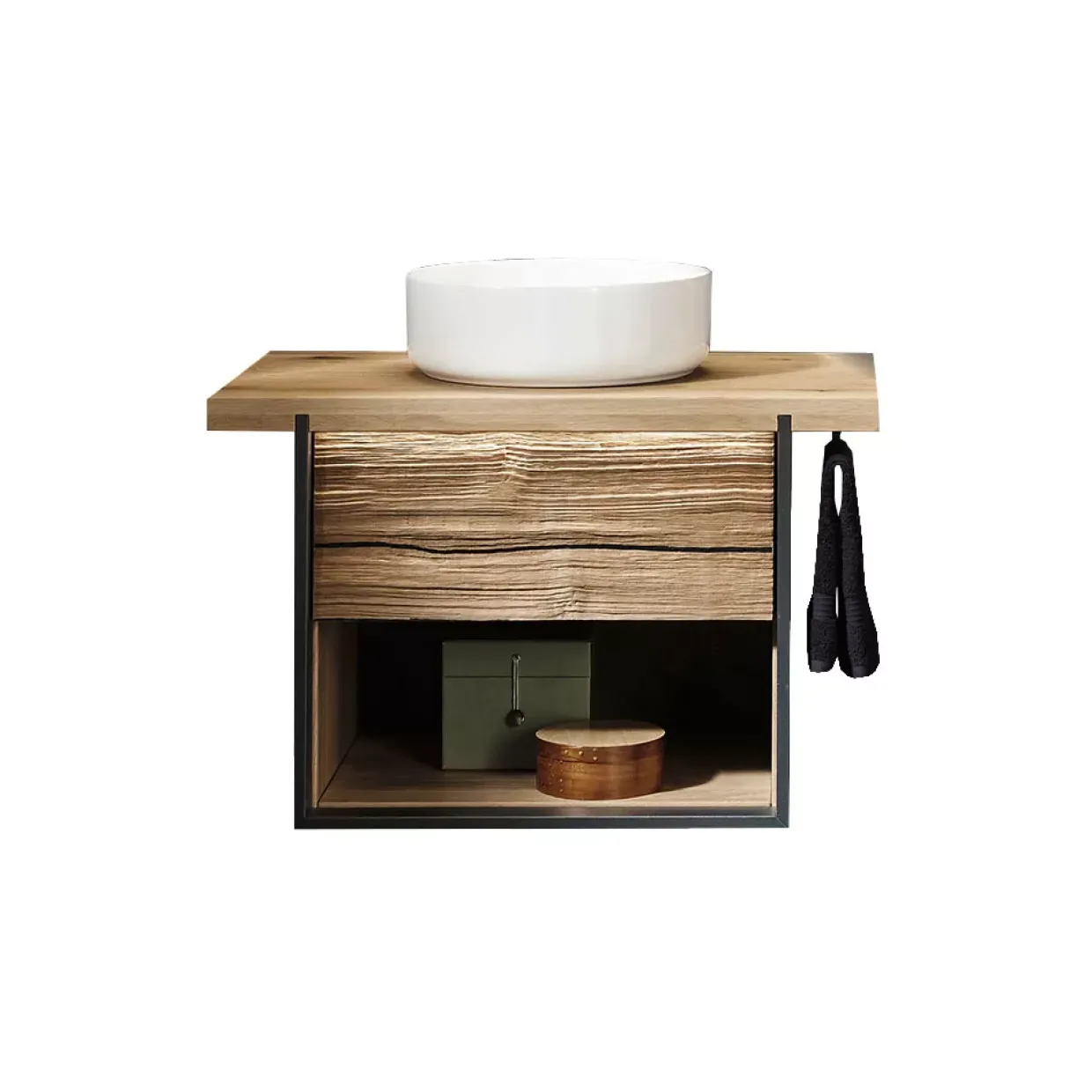 Wildeiche Massiv bringt einen Hauch von natürlicher Eleganz in Ihr Badezimmer. Die Steel Waschtisch-Kombination verbindet modernes Design mit der zeitlosen Schönheit von Holz und schafft so einen harmonischen Blickfang in jedem Raum. Die Kombination aus robustem Material und klaren Linien macht dieses Möbelstück zu einem langlebigen Begleiter im Alltag.