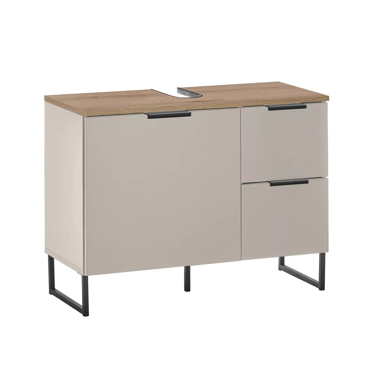 Ein besonderes Highlight ist der Schubkastenauszug mit Unterflurauszug, der durch seine geschickte Konstruktion optimale Raumausnutzung ermöglicht. Der sanfte und leise Schließmechanismus des Soft-Close-Systems erhöht den Komfort und schützt zugleich das Möbelstück. Der Unterschrank ist in einer Auswahl an stilvollen Farben wie Kaschmier, Evoke Eiche und Schwarz erhältlich, die sich nahtlos in verschiedene Einrichtungsstile integrieren lassen.