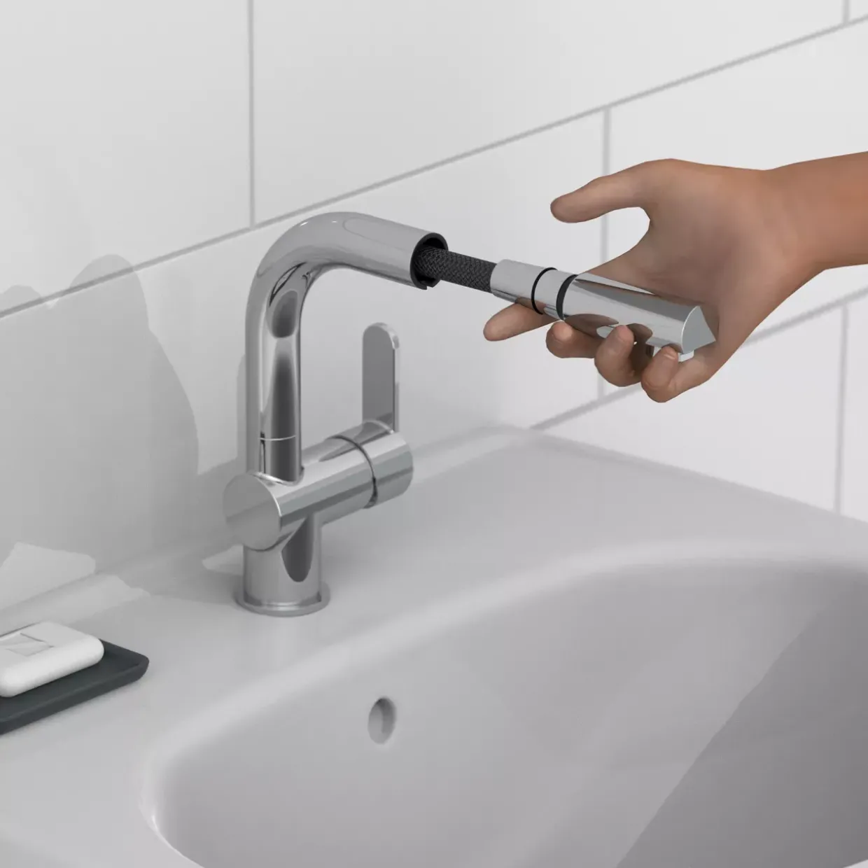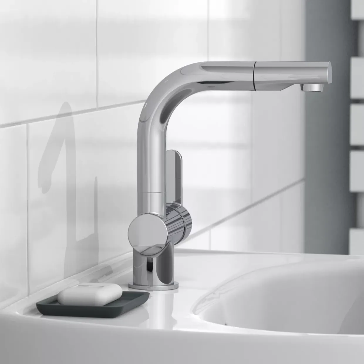 Die herausziehbare Haarbrause der Waschtischarmatur London ermöglicht ein flexibles und komfortables Nutzungserlebnis. Mit einem schwenkbaren Auslauf ausgestattet, bietet dieses moderne Modell aus hochwertigem Metall eine elegante Lösung für Ihr Badezimmer. Der zeitgemäße Chrom-Look fügt sich nahtlos in verschiedenste Einrichtungsstile ein und verleiht Ihrem Waschbereich einen Hauch von Raffinesse.