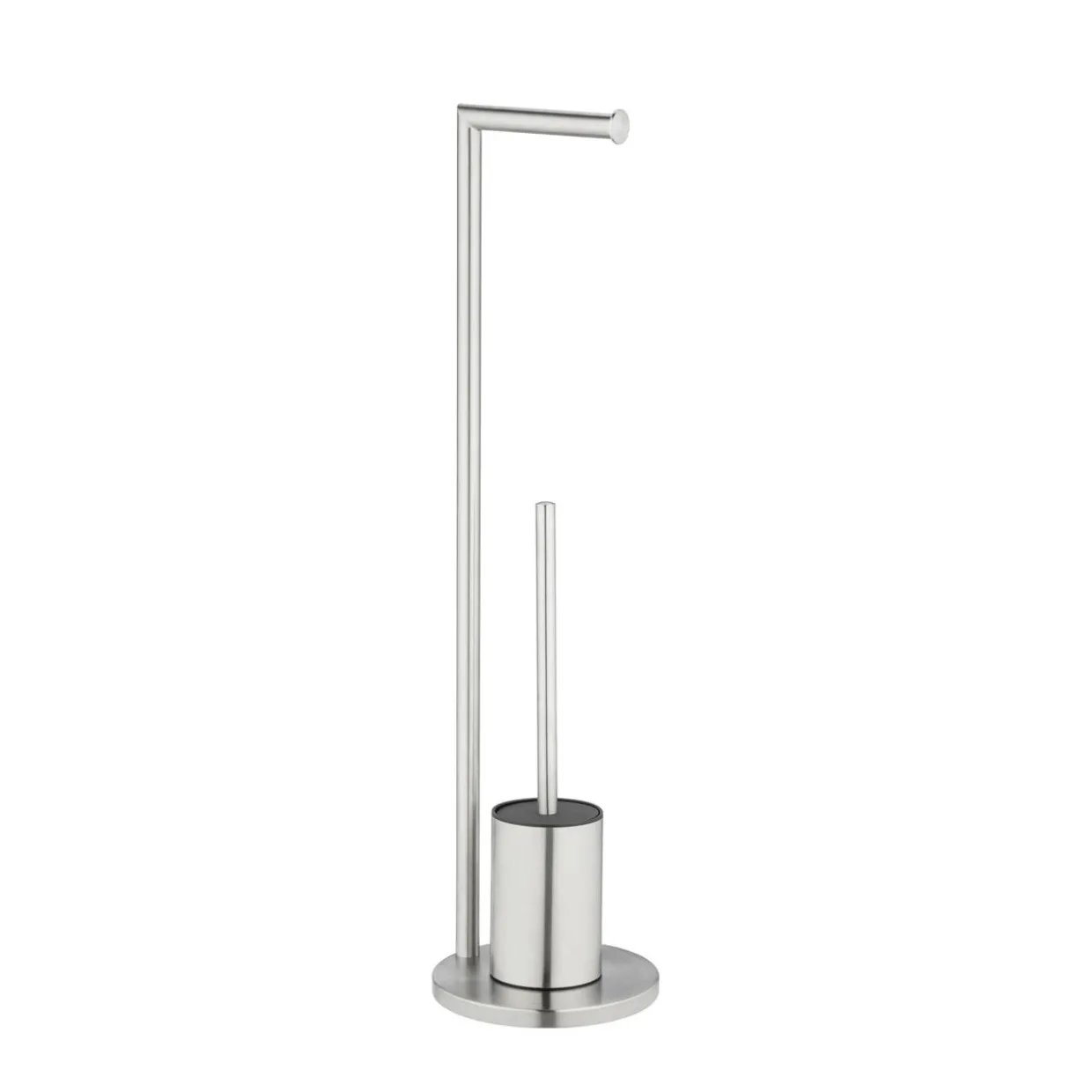 Mit einer satinierten Oberfläche strahlt die moderne Stand WC-Garnitur Ferla zeitlose Eleganz aus. Edelstahl als Material sorgt nicht nur für ein ansprechendes Erscheinungsbild, sondern garantiert auch eine rostfreie Langlebigkeit. Diese Eigenschaften machen die WC-Bürstengarnitur zu einem zuverlässigen Begleiter in Ihrem Badezimmer.
