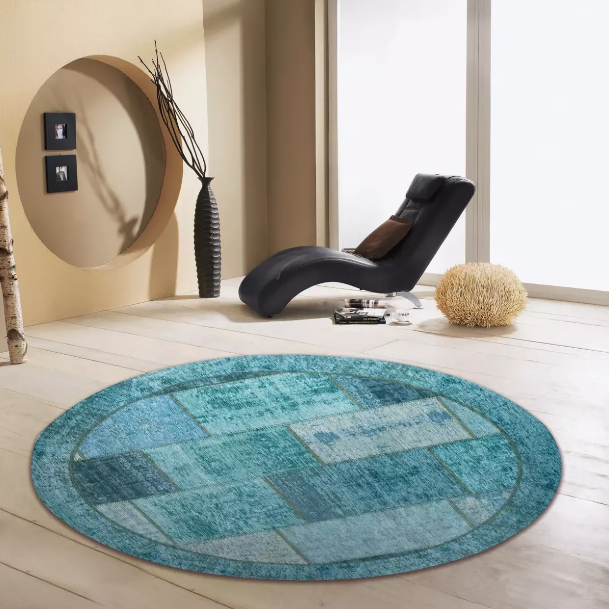 Türkisfarbene Eleganz für Ihr Zuhause: Der moderne Webteppich bietet nicht nur stilvolle Akzente, sondern auch funktionale Vorteile. Mit einem großzügigen Durchmesser von 200 cm passt er perfekt in verschiedene Raumkonzepte und setzt dabei ein Statement.