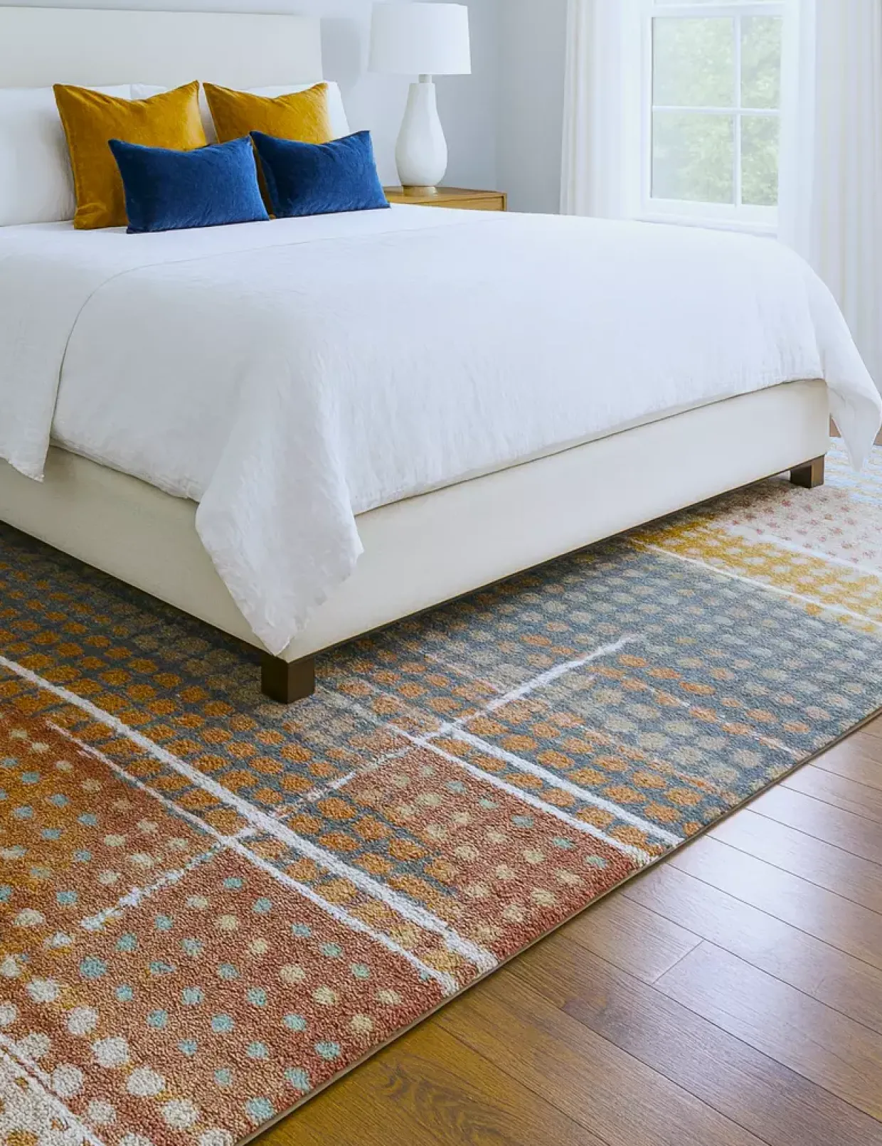 Ein rechteckiger Akzent für jeden Raum, der Montreal Webteppich vereint moderne Eleganz und Vielseitigkeit. Mit seinem bunten Farbspektrum zieht er alle Blicke auf sich und verleiht jeder Umgebung eine lebendige Atmosphäre. Die abstrakten Muster dieses Teppichs sind nicht nur ein Hingucker, sondern auch ein Ausdruck zeitgenössischen Designs.Gefertigt aus hochwertigem Polypropylen, bietet der Teppich eine langlebige und pflegeleichte Basis für Ihren Wohnbereich. Polypropylen ist bekannt für seine Robustheit und Beständigkeit, was diesen Teppich zu einem idealen Begleiter für stark frequentierte Bereiche macht. Die spezielle Heatset-Technologie sorgt für eine besonders feine und dichte Struktur der Fasern, die sich angenehm weich anfühlt und eine luxuriöse Textur aufweist.Der Montreal Webteppich passt perfekt in ein modernes Ambiente und setzt stilvolle Akzente in Wohn- oder Arbeitsräumen. Seine rechteckige Form ermöglicht eine flexible Integration in verschiedene Raumkonzepte, während das bunte Design eine frische und dynamische Note hinzufügt. Lassen Sie sich von der Kombination aus Funktionalität und Ästhetik inspirieren und entdecken Sie, wie dieser Teppich Ihrem Zuhause einen Hauch von Moderne verleihen kann.