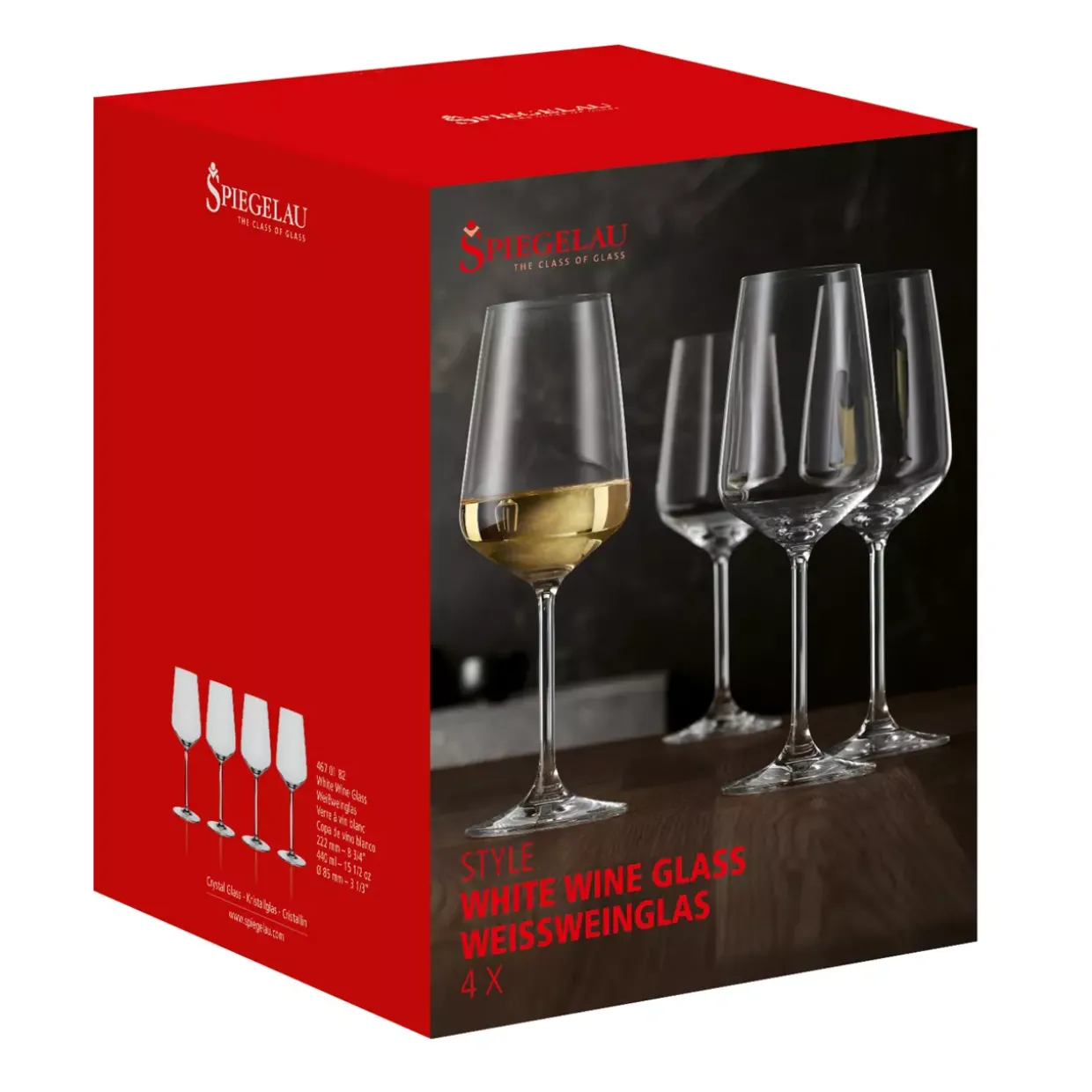 Kristallklare Eleganz trifft auf modernes Design: Das Weißweinglas-Set Style bringt mit seiner transparenten Schönheit einen Hauch von Raffinesse in jedes Ambiente. Jedes Glas in diesem Set, bestehend aus vier Stück, besticht durch seine filigrane Form und den Durchmesser von 8,5 cm, der eine angenehme Handhabung ermöglicht. Die Füllqualität von 0,44 Litern bietet ausreichend Raum, um die Aromen des Weines optimal zur Geltung zu bringen.